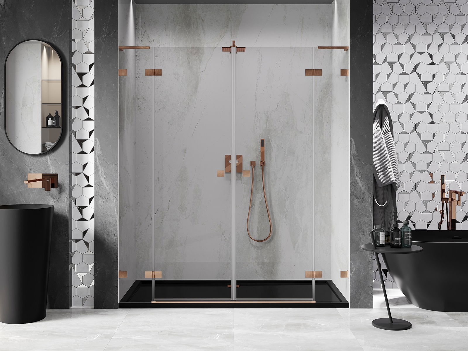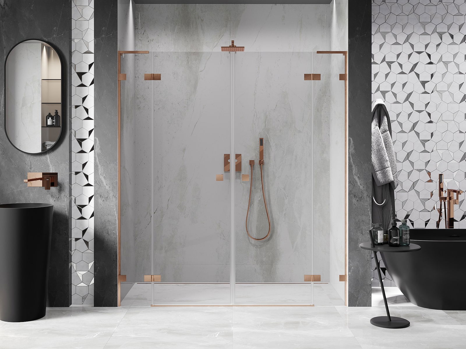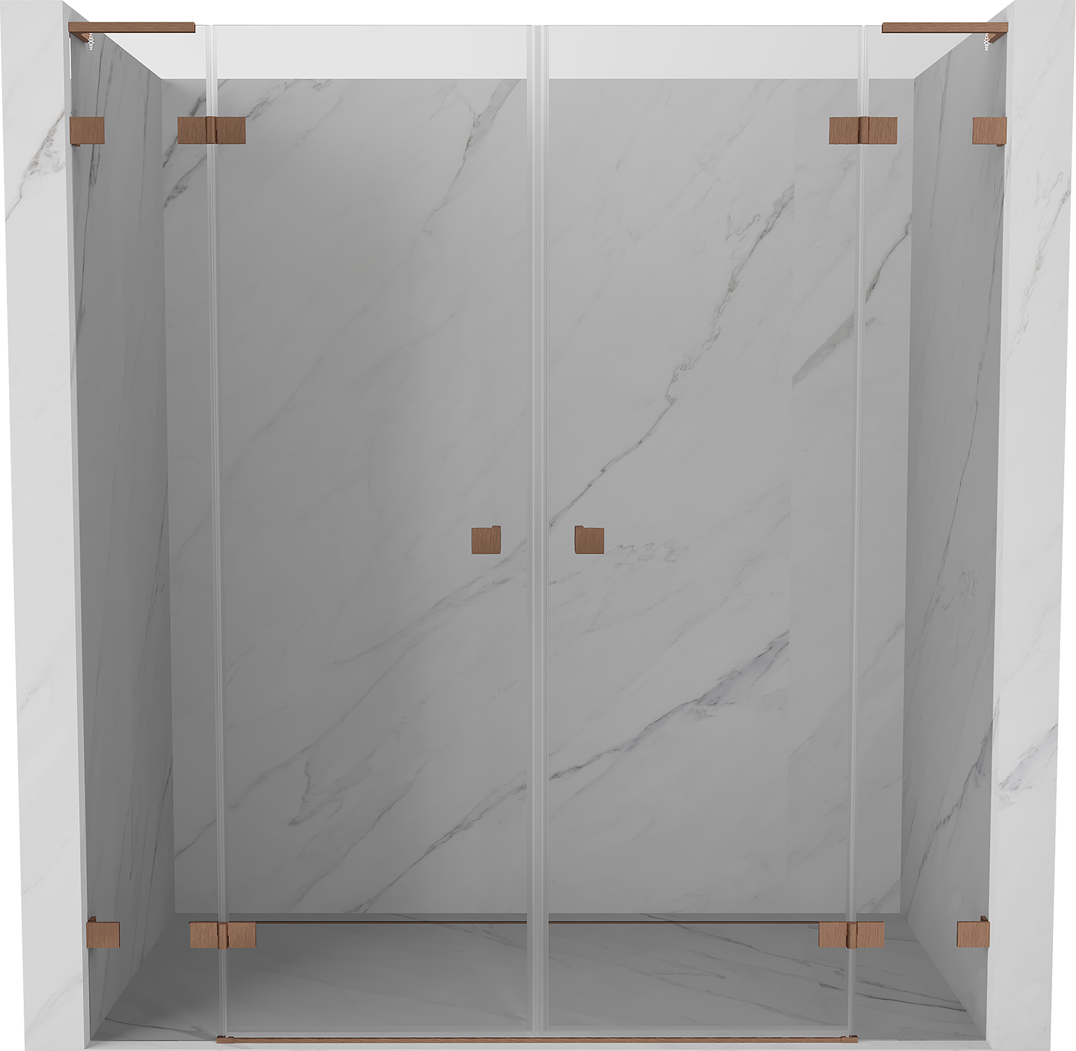 Mexen Lunar L Duo portes de douche battantes 180 cm, transparent, cuivre brossé - 834DL-180-000-65-00