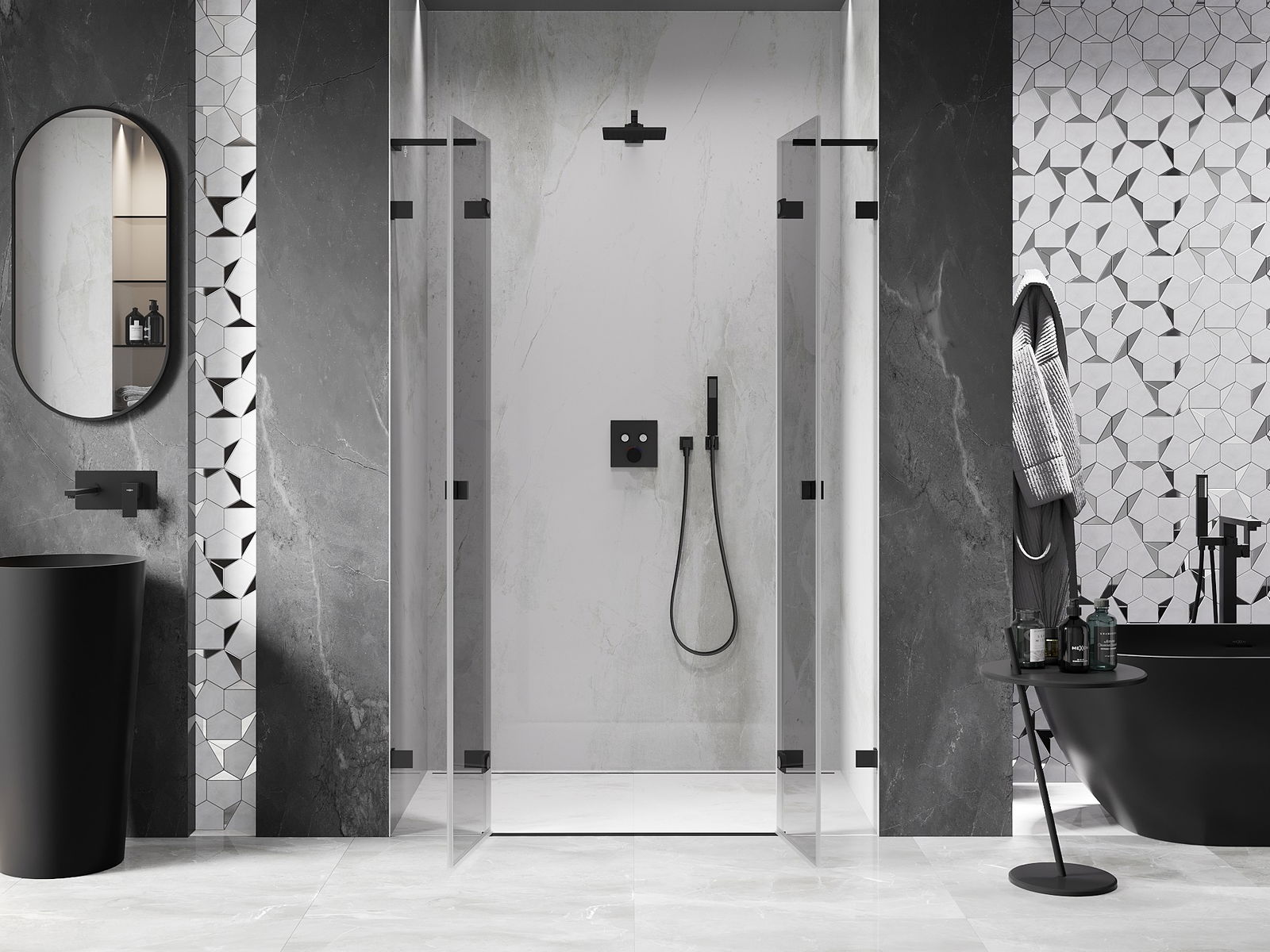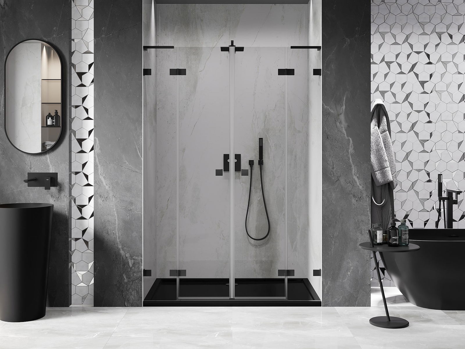 Mexen Lunar L Duo porte de douche pivotante 150 cm, transparentes, noires - 834DL-150-000-70-00