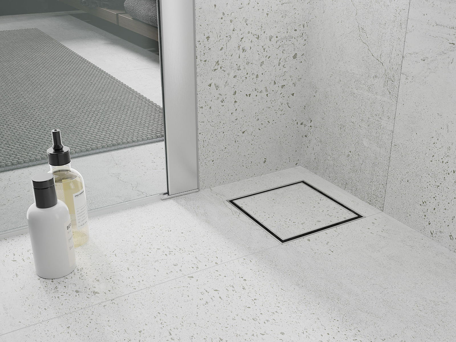 Les entretoises amortissantes garantissent un positionnement uniforme de la grille, assurant son aspect esthétique. Elles préviennent efficacement le frottement du gril contre le boîtier et réduisent le bruit généré lors de la chute d'eau directement dans le drain.