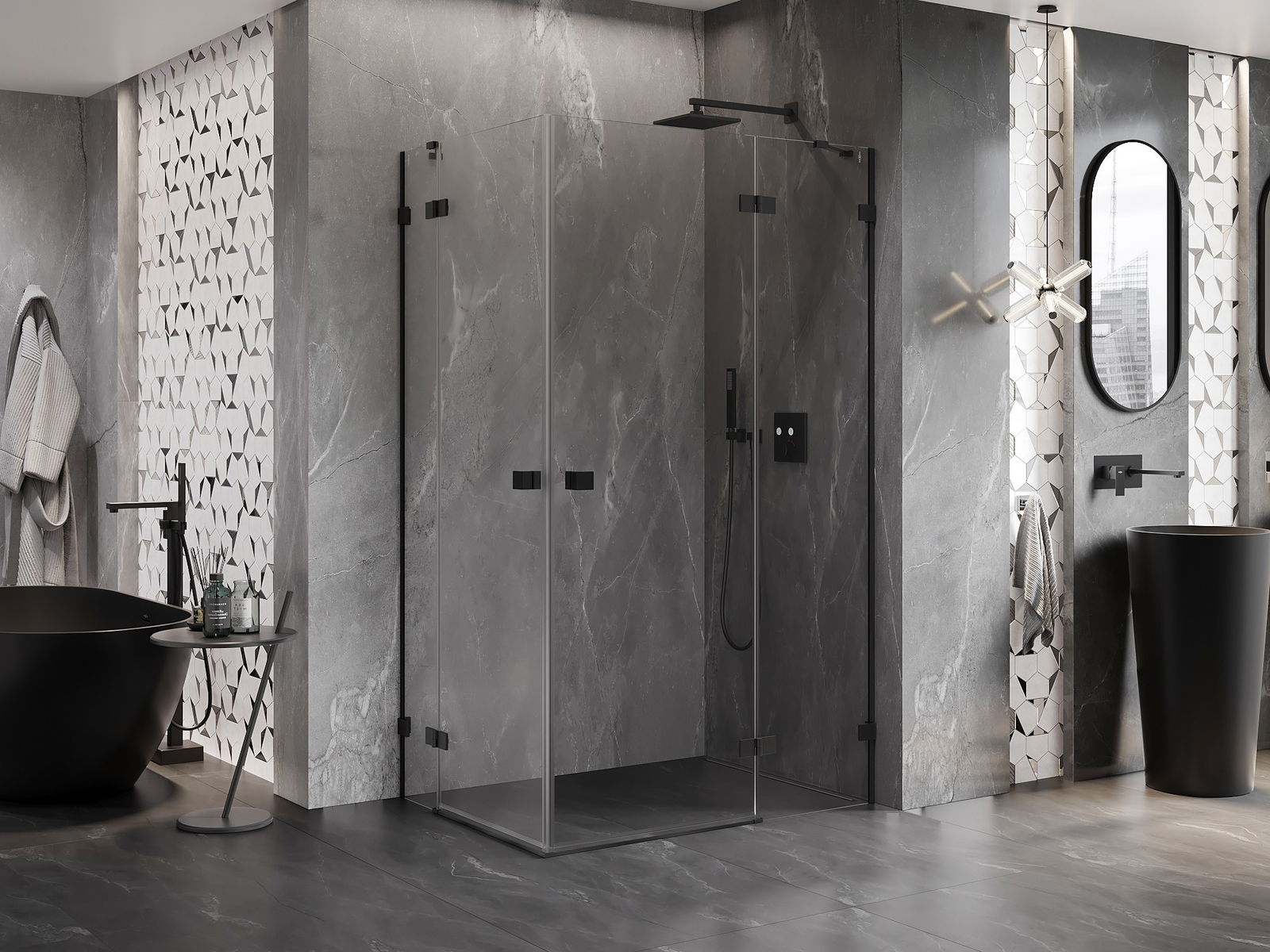 La poignée pratique et confortable est fabriquée en métal durable et résistant. Sa forme à la mode, combinée à une finition assortie à la couleur des profilés, donne à l'ensemble un aspect moderne et stylé, soulignant l'esthétique de chaque salle de bain.