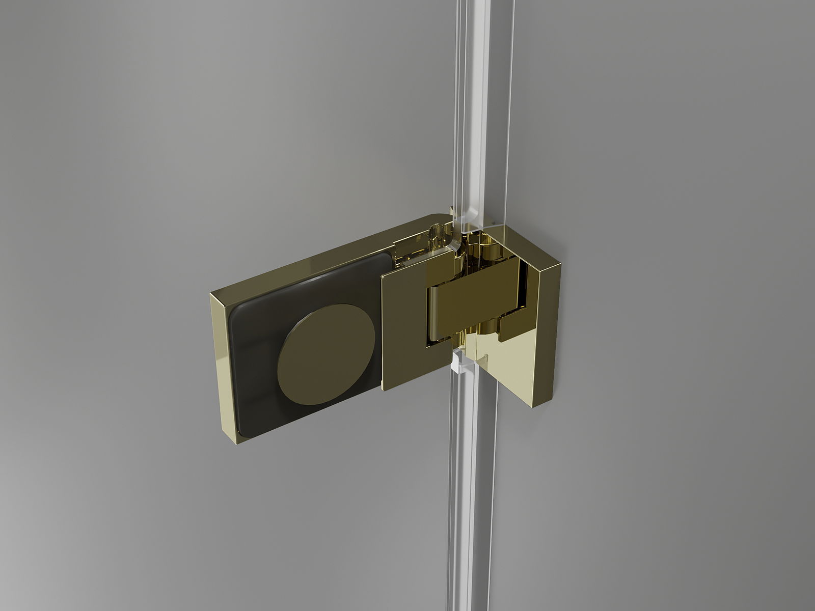 Pattes et charnières en laiton affleurant avec la surface du verre