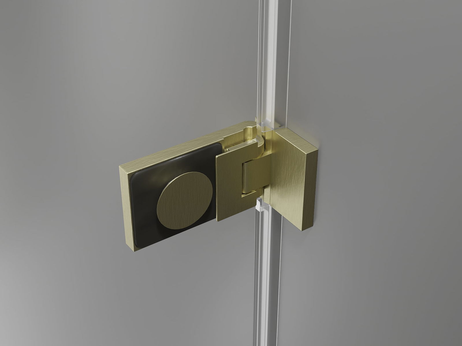 Plaquettes et charnières en laiton affleurant la surface du verre