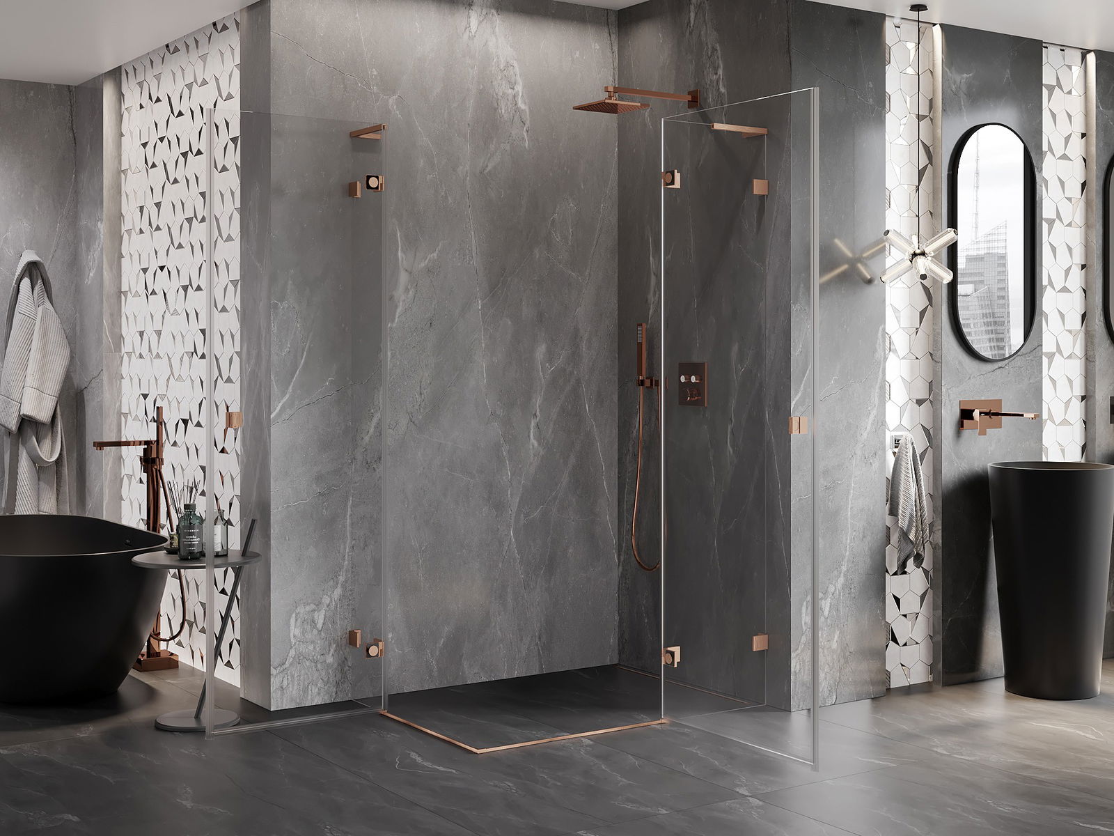 La poignée pratique et confortable est fabriquée en métal durable et résistant. Sa forme à la mode, combinée à une finition assortie à la couleur des profilés, donne à l'ensemble un aspect moderne et stylé, soulignant l'esthétique de chaque salle de bain.