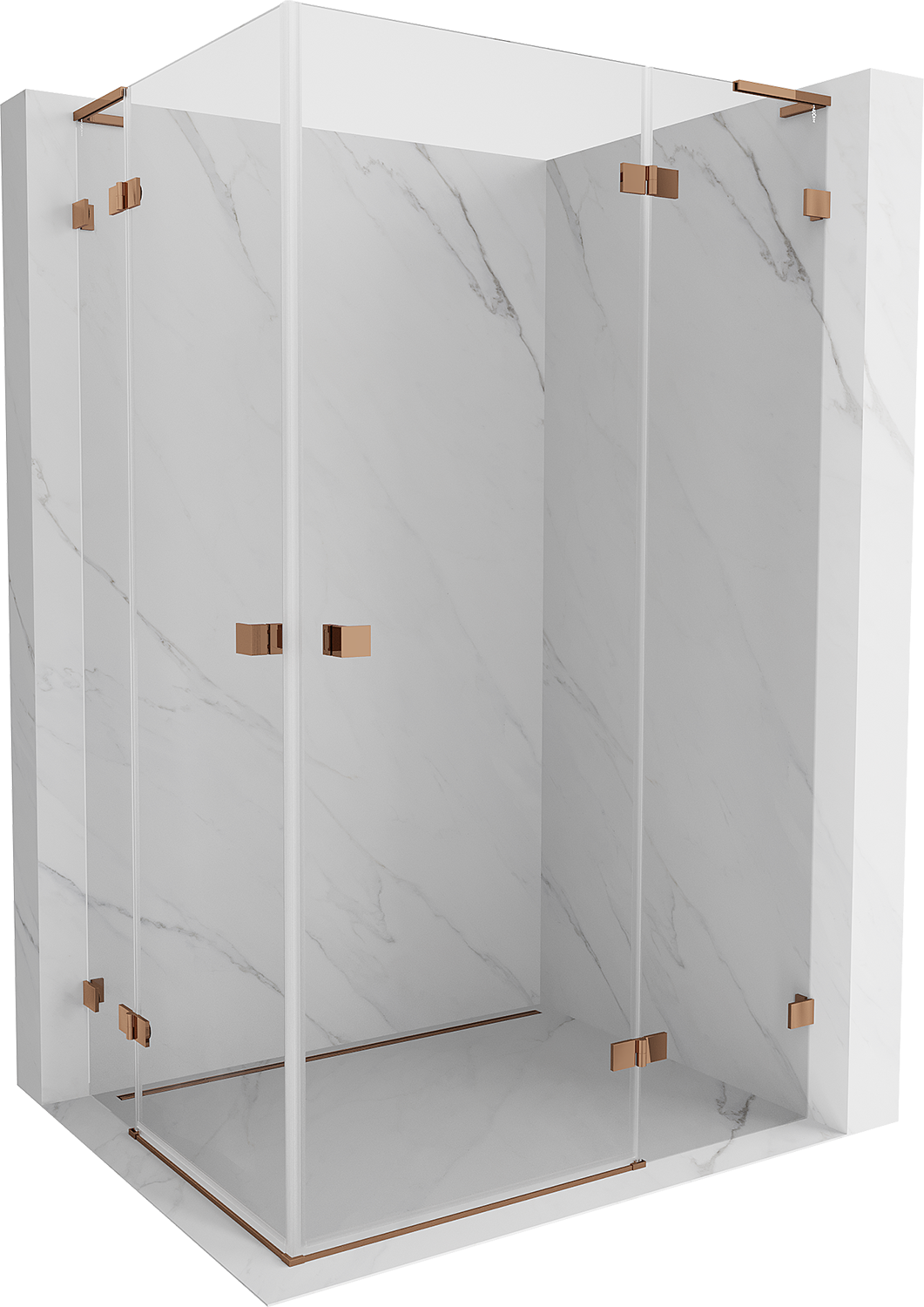 Mexen Lunar L Duo cabine de douche pivotante droite 90 x 85 cm, transparent, or rose - 834L-090P-085L-60-00