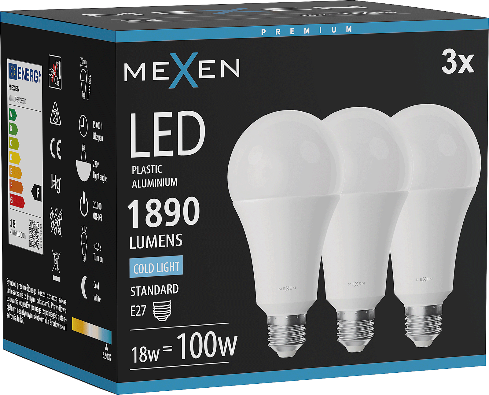 Mexen Nova 3x Ampoule LED E27, A70, 18W, Froid - 6500K, 1890 lm - L100-E27-1865-01x03