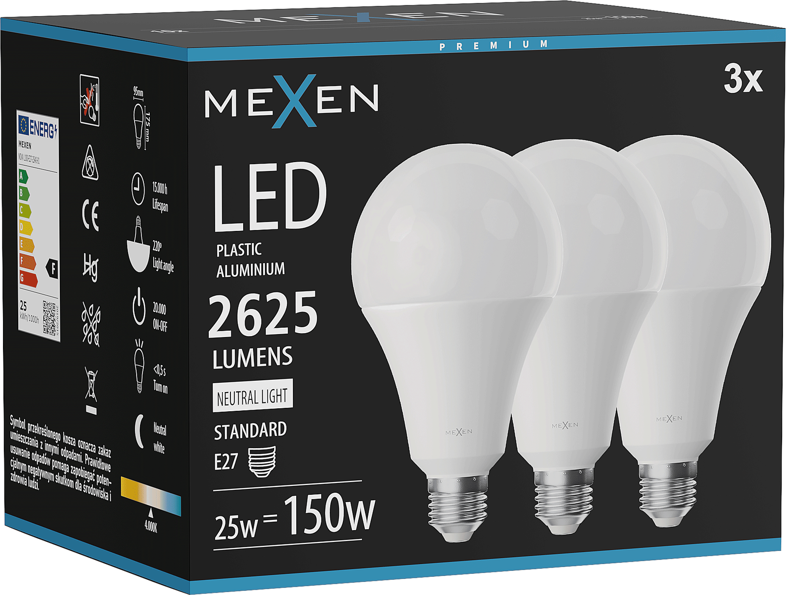 Mexen Nova 3x Ampoule LED E27, A95, 25W, Neutre - 4000K, 2625 lm - L100-E27-2540-01x03