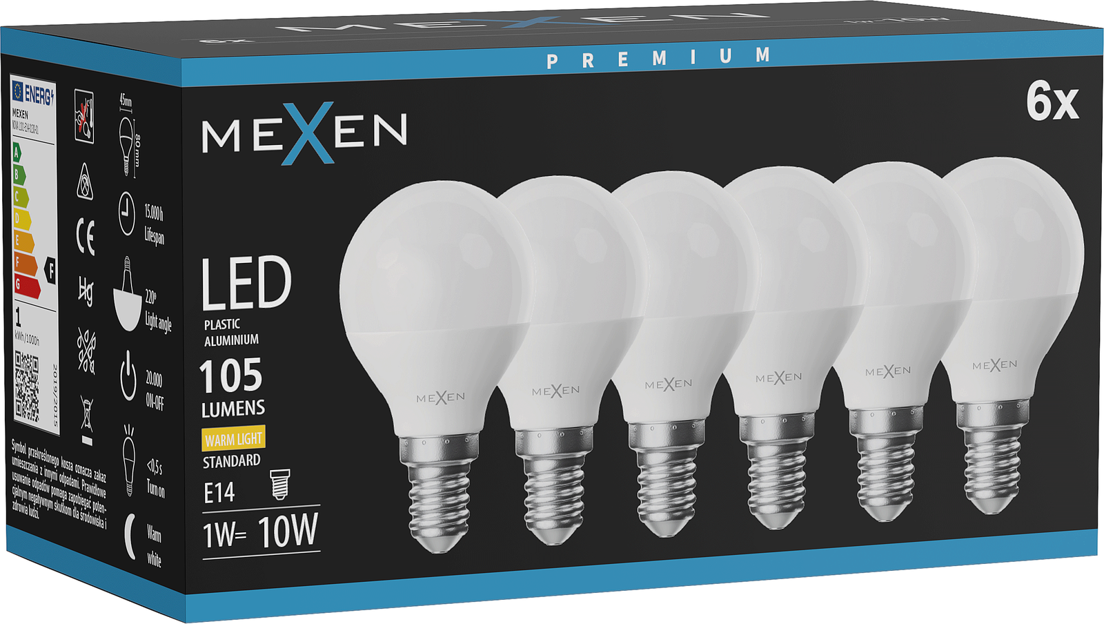 Mexen Nova 6x Ampoule LED E14, G45, 1W, Chaude - 3000K, 105 lm - L101-E14-0130-01x06