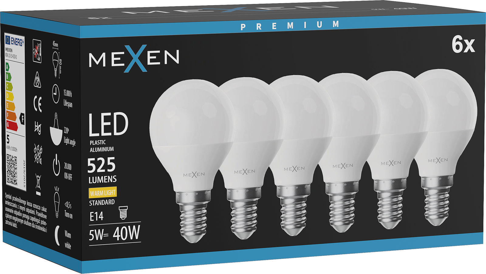 Mexen Nova 6x Ampoule LED E14, G45, 5W, Chaude - 3000K, 525 lm - L101-E14-0530-01x06