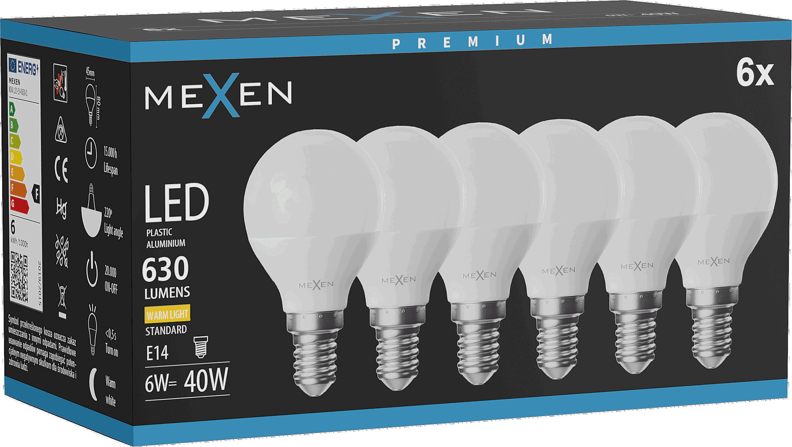 Mexen Nova 6x Ampoule LED E14, G45, 6W, Chaude - 3000K, 630 lm - L101-E14-0630-01x06