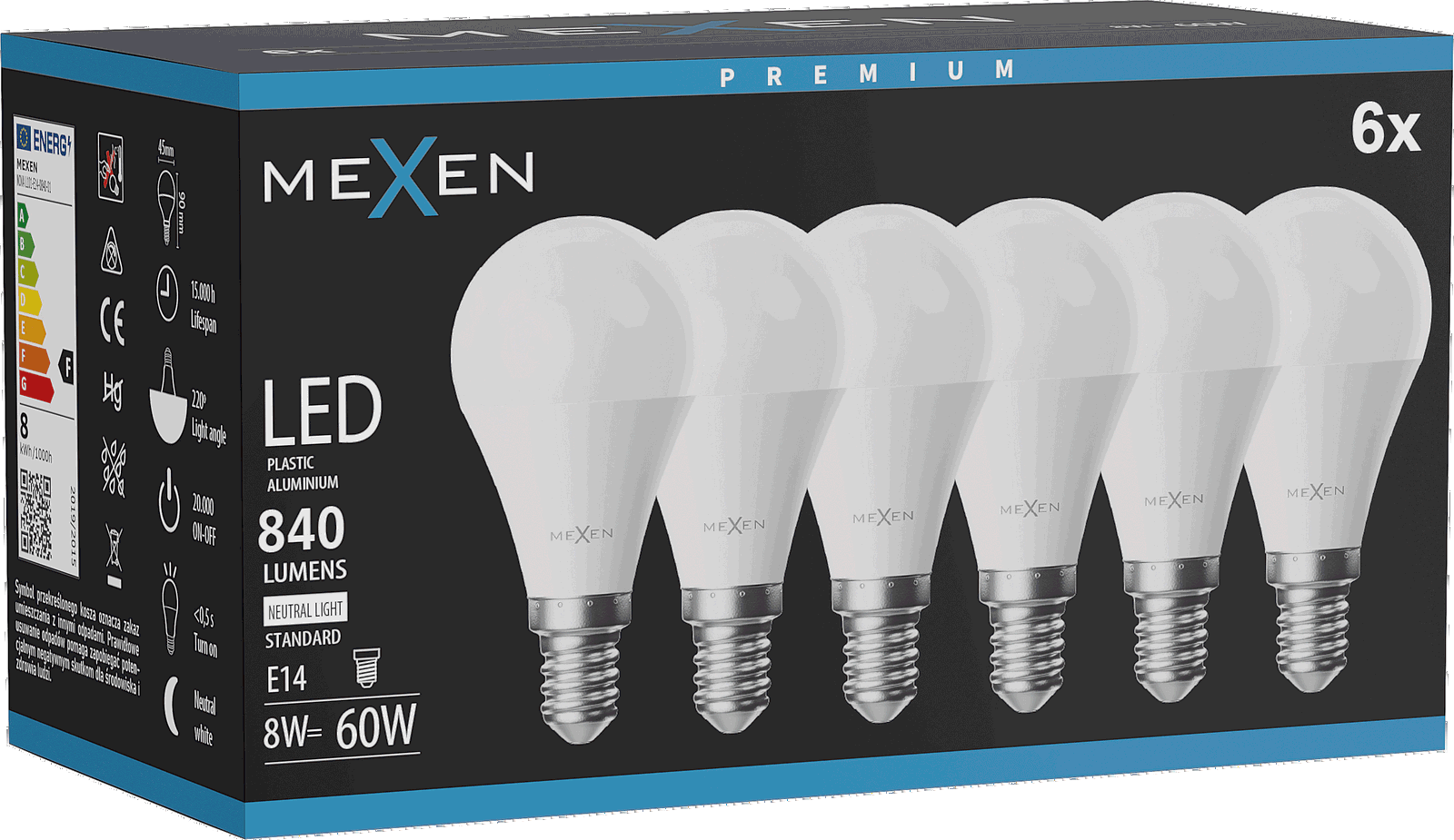 Mexen Nova 6x Ampoule LED E14, G45, 8W, Neutre - 4000K, 840 lm - L101-E14-0840-01x06