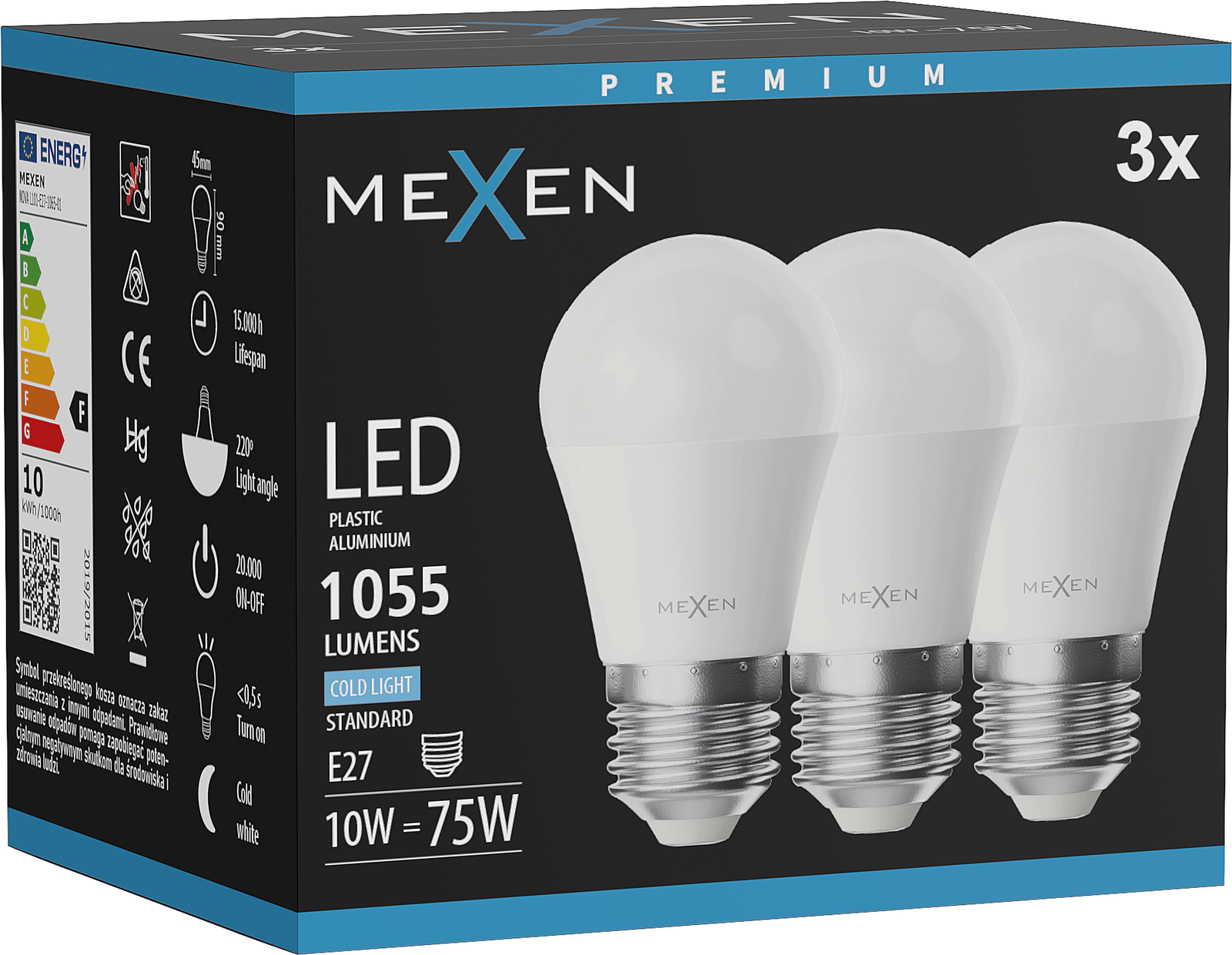 Mexen Nova 3x Ampoule LED E27, G45, 10W, Froid - 6500K, 1055 lm - L101-E27-1065-01x03