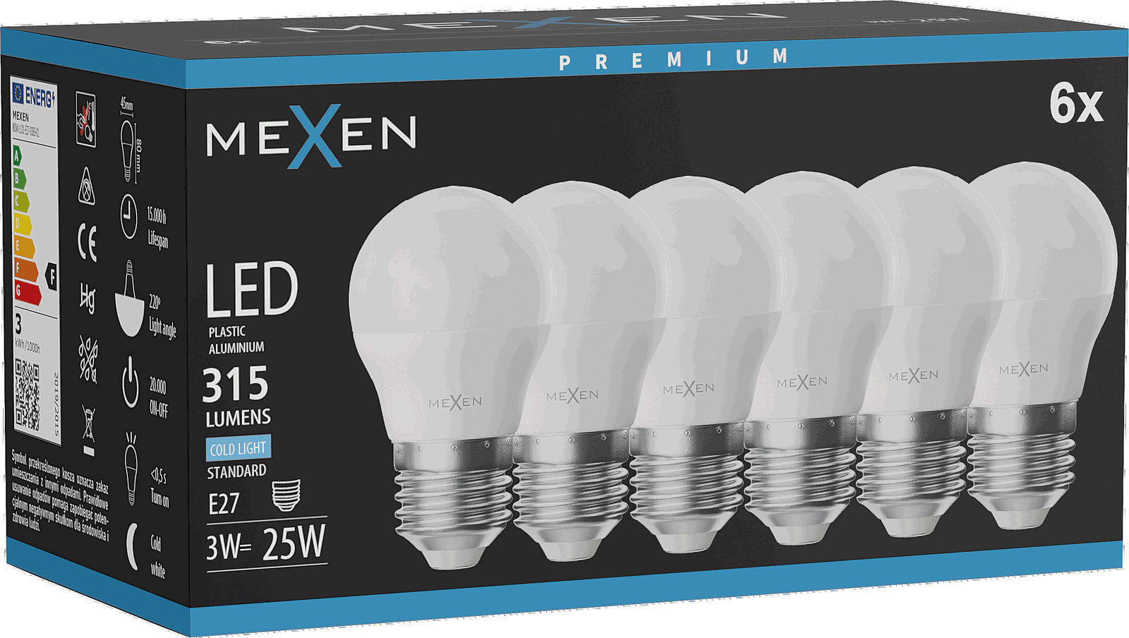 Mexen Nova 6x Ampoule LED E27, G45, 3W, Froid - 6500K, 315 lm - L101-E27-0365-01x06