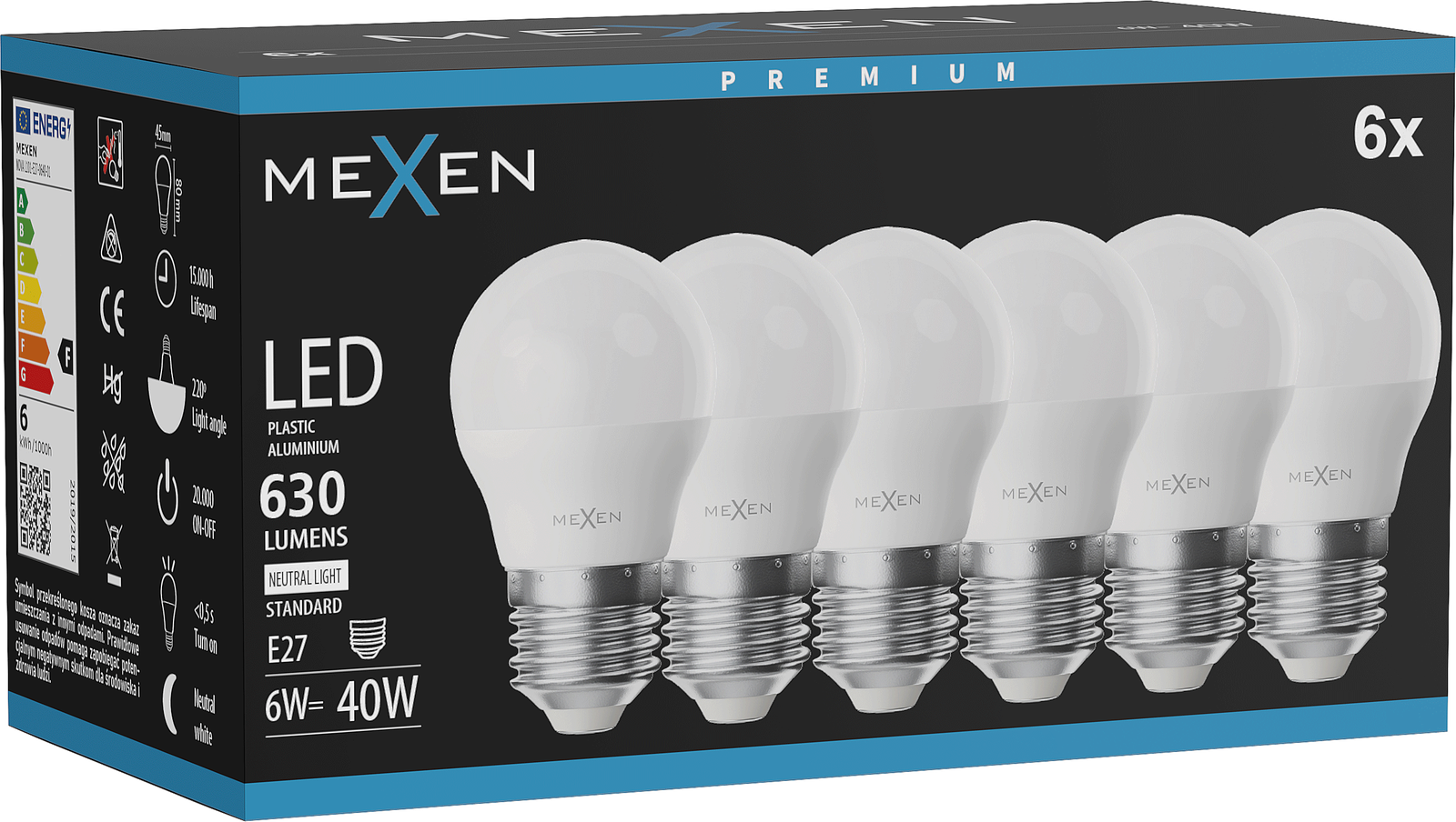 Mexen Nova 6x Ampoule LED E27, G45, 6W, Neutre - 4000K, 630 lm - L101-E27-0640-01x06