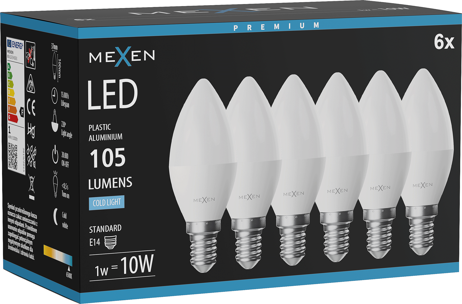 Mexen Nova 6x Ampoule LED E14, C37, 1W, Froide - 6500K, 105 lm - L102-E14-0165-01x06