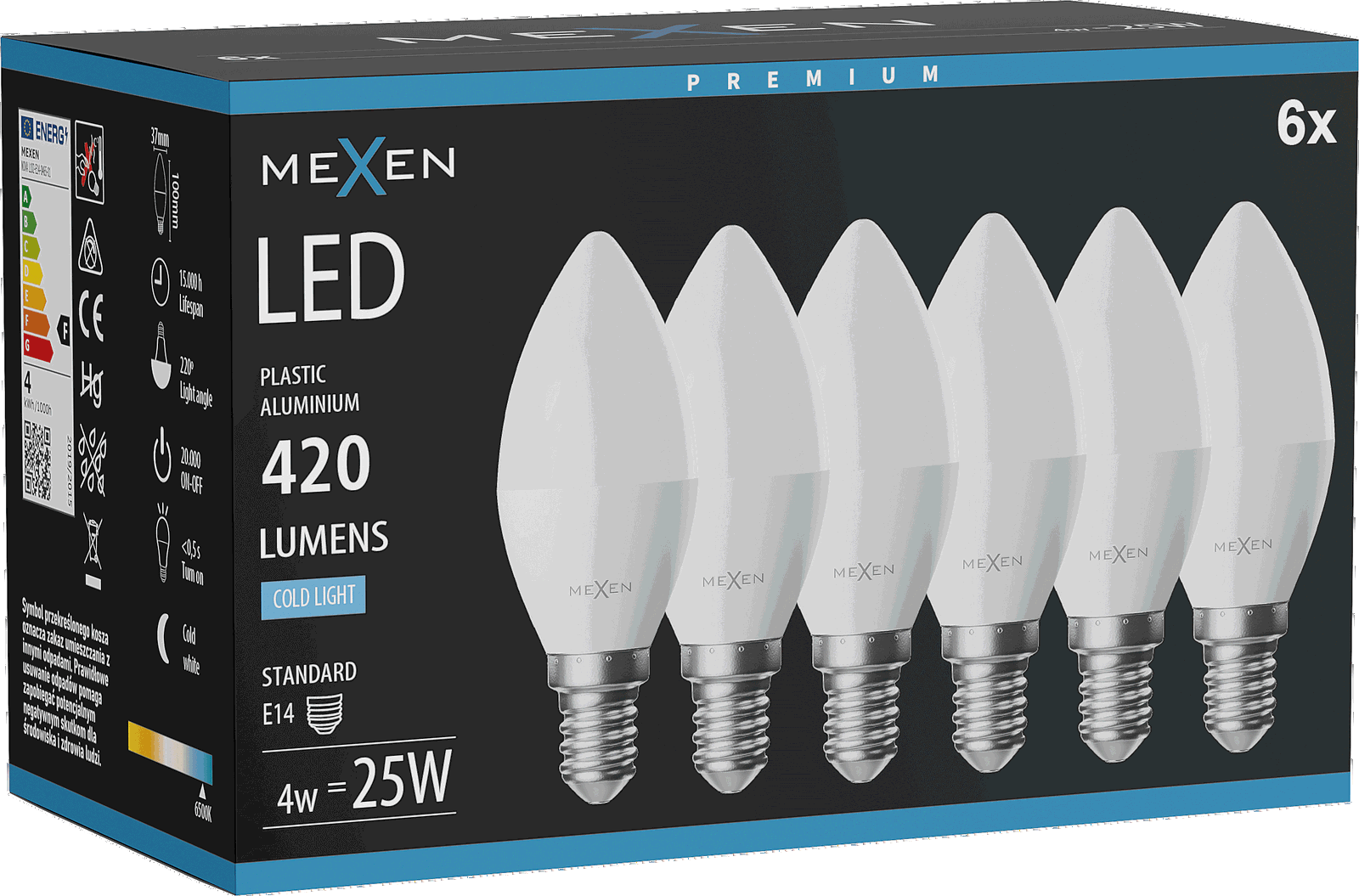 Mexen Nova 6x Ampoule LED E14, C37, 4W, Froid - 6500K, 420 lm - L102-E14-0465-01x06