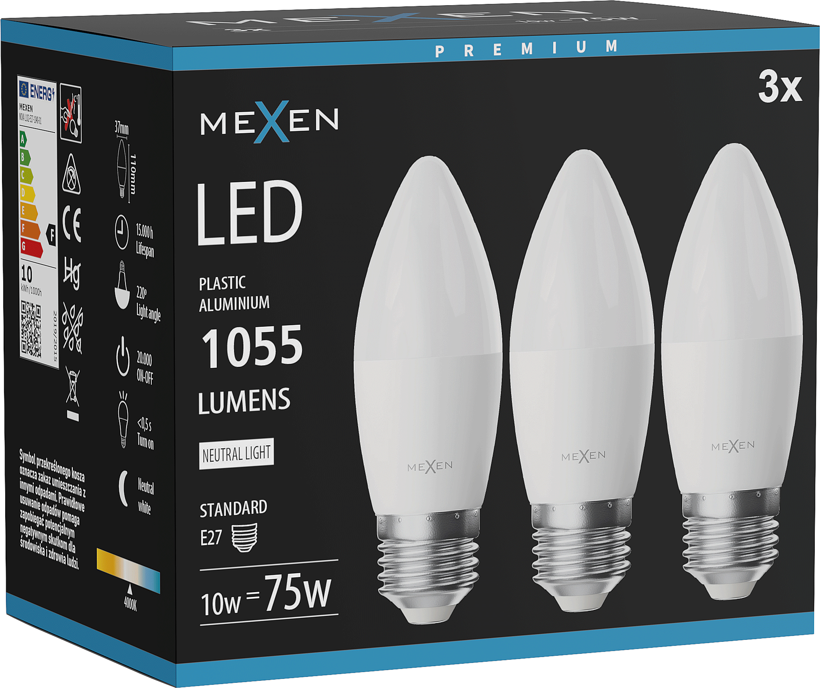Mexen Nova 3x Ampoule LED E27, C37, 10W, Neutre - 4000K, 1055 lm - L102-E27-1040-01x03