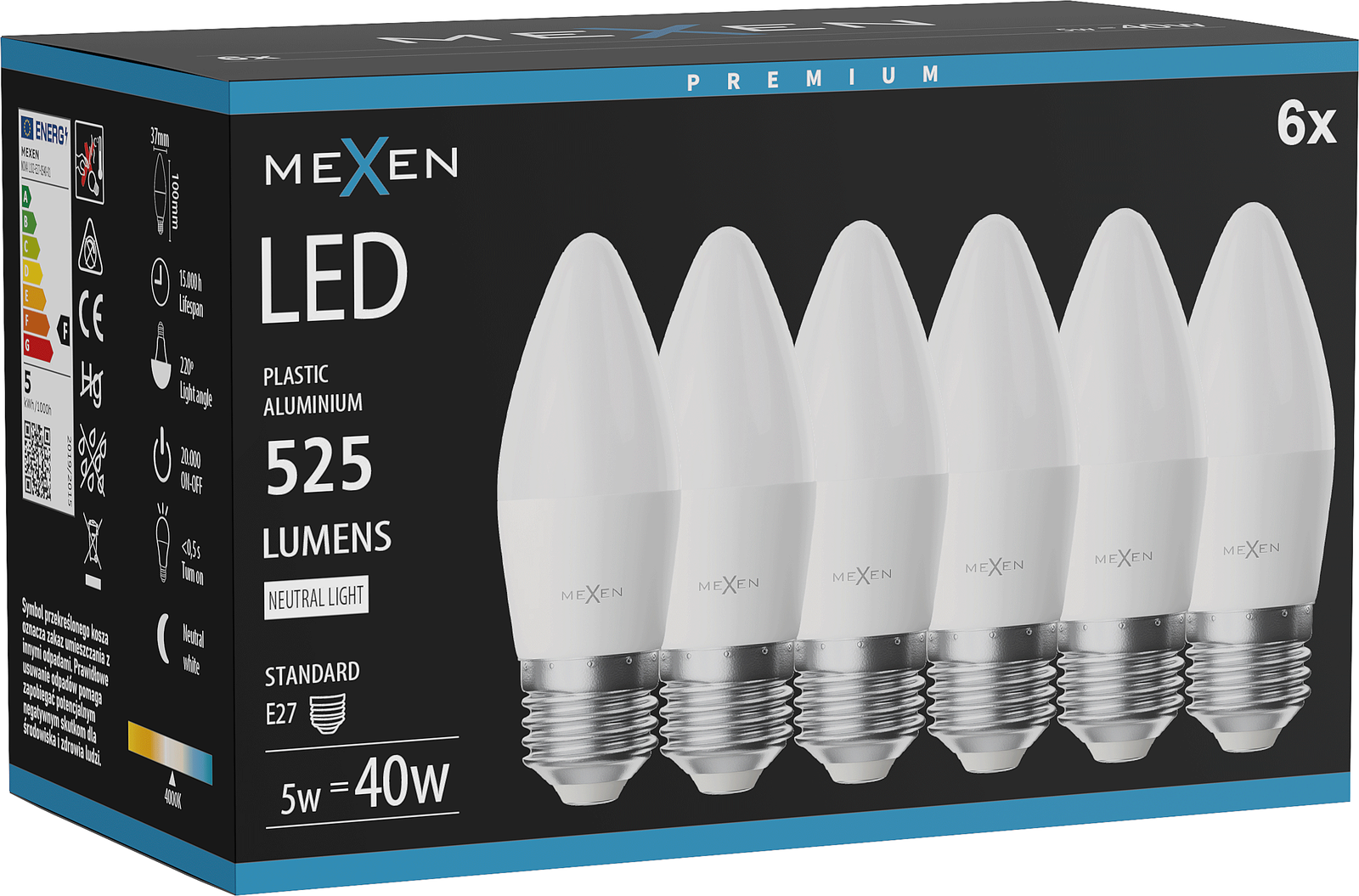 Mexen Nova 6x Ampoule LED E27, C37, 5W, Neutre - 4000K, 525 lm - L102-E27-0540-01x06