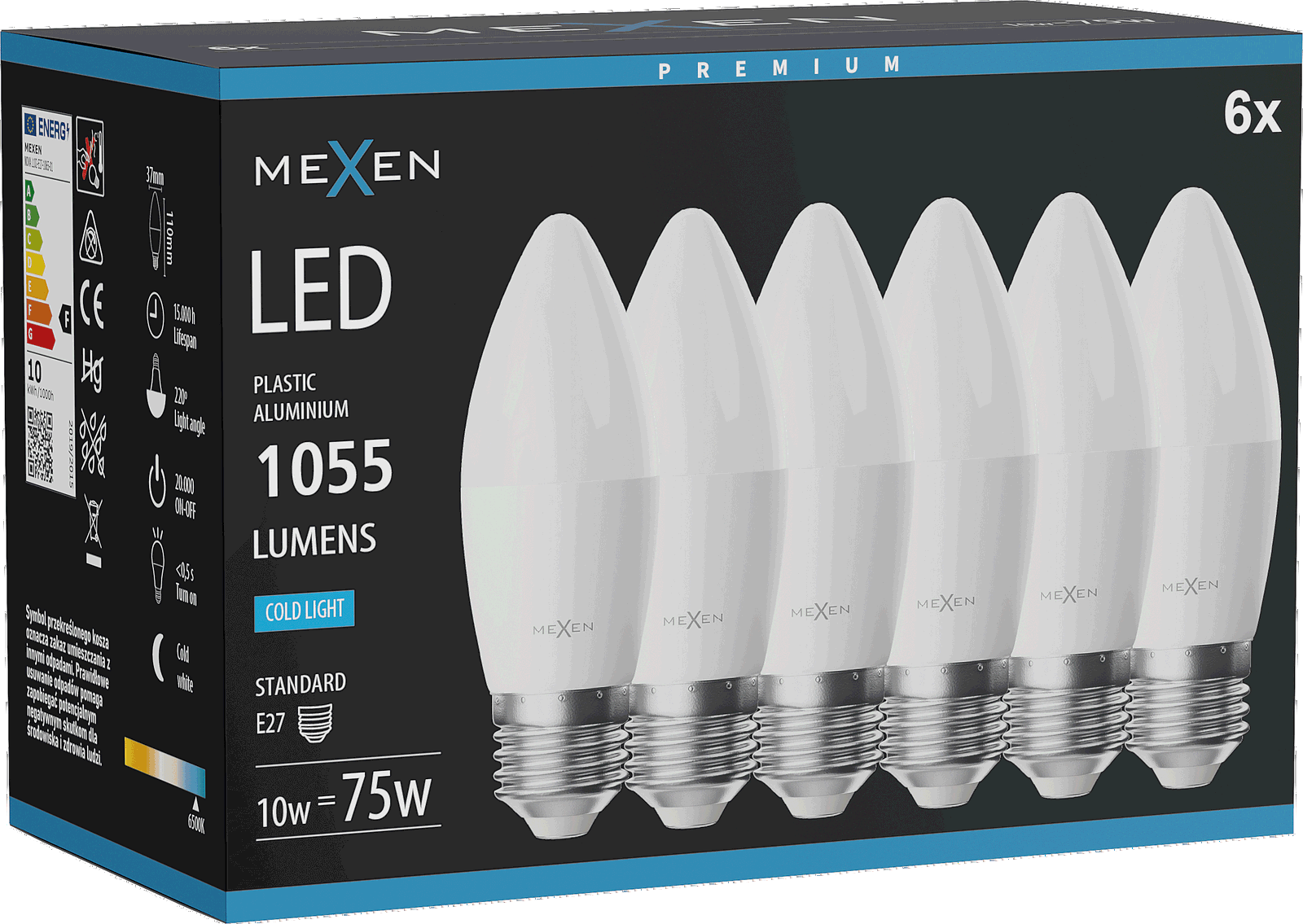 Mexen Nova 6x Ampoule LED E27, C37, 10W, Froid - 6500K, 1055 lm - L102-E27-1065-01x06