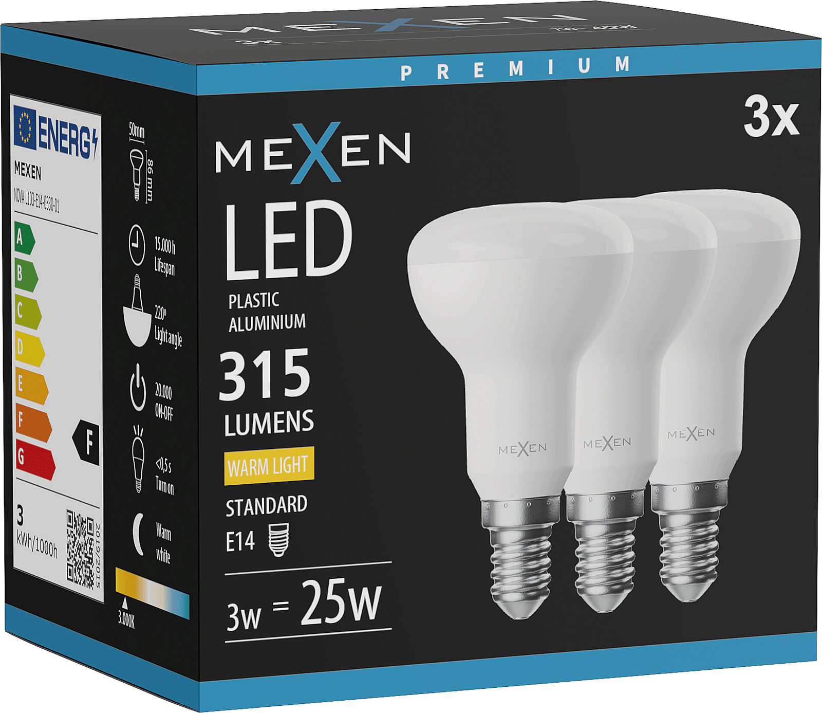 Mexen Nova 3x Ampoule LED E14, R50, 3W, Chaude - 3000K, 315 lm - L103-E14-0330-01x03