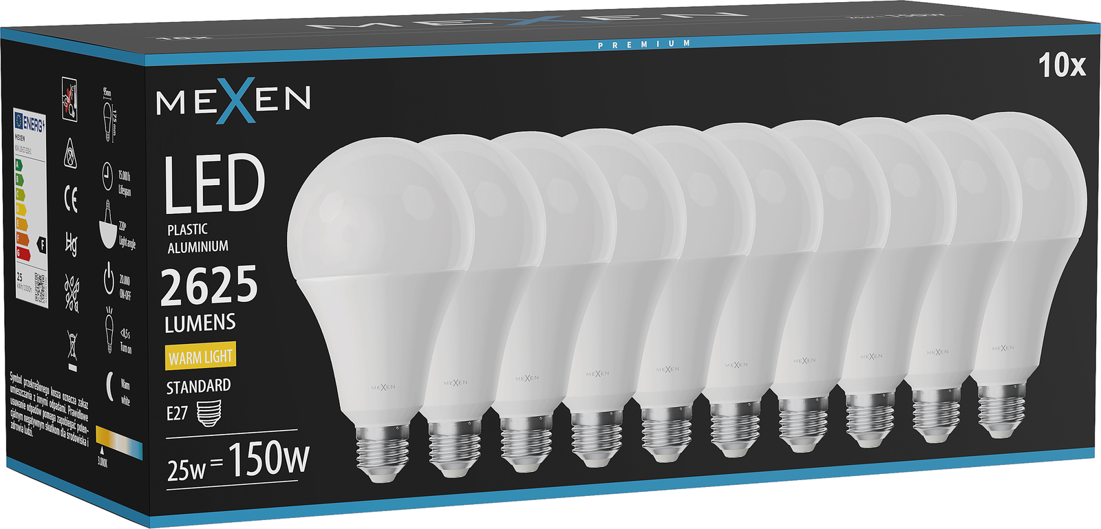 Mexen Nova 10x Ampoule LED E27, A95, 25W, Chaude - 3000K, 2625 lm - L100-E27-2530-01x10