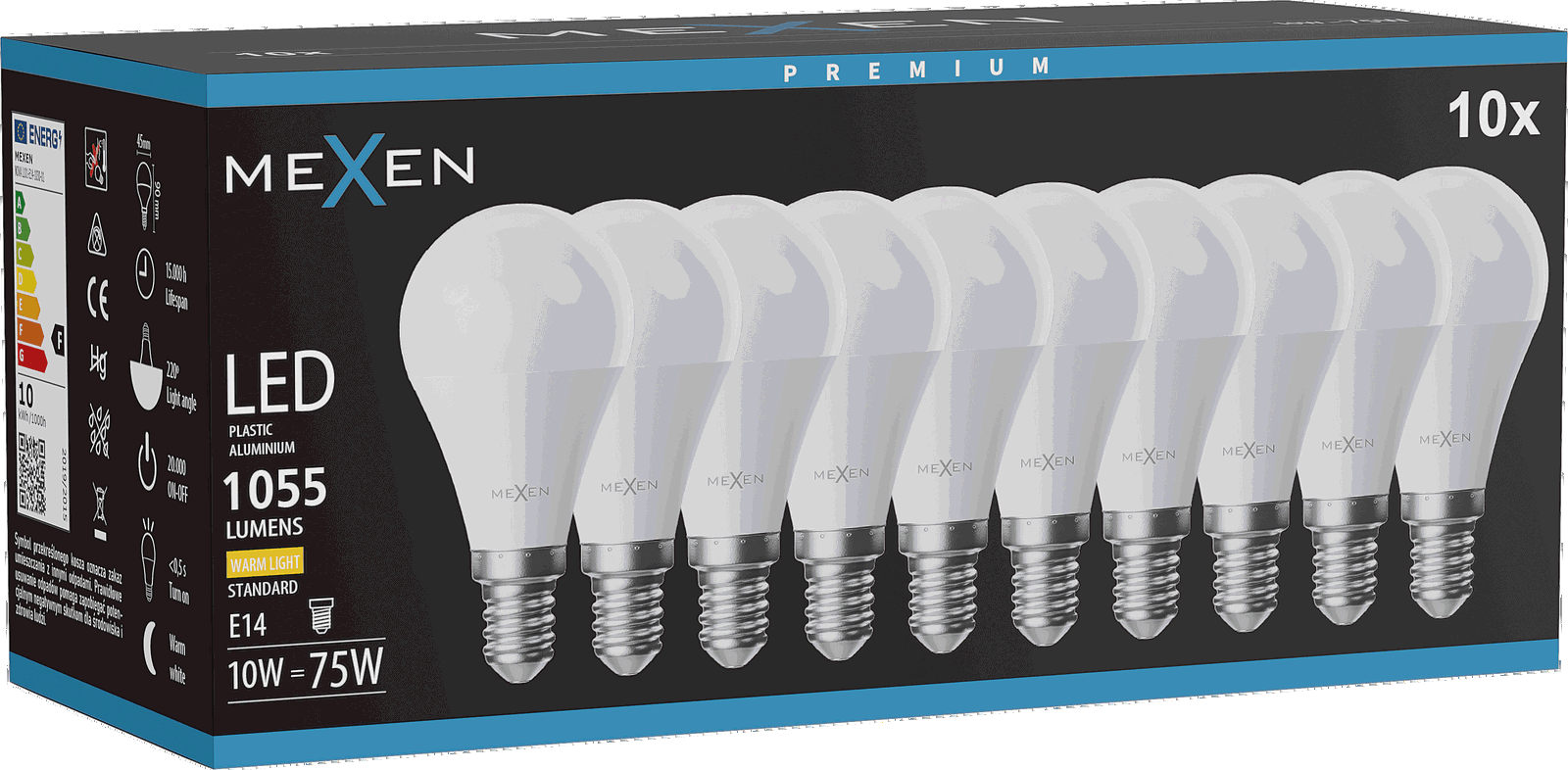 Mexen Nova 10x Ampoule LED E14, G45, 10W, Chaude - 3000K, 1055 lm - L101-E14-1030-01x10