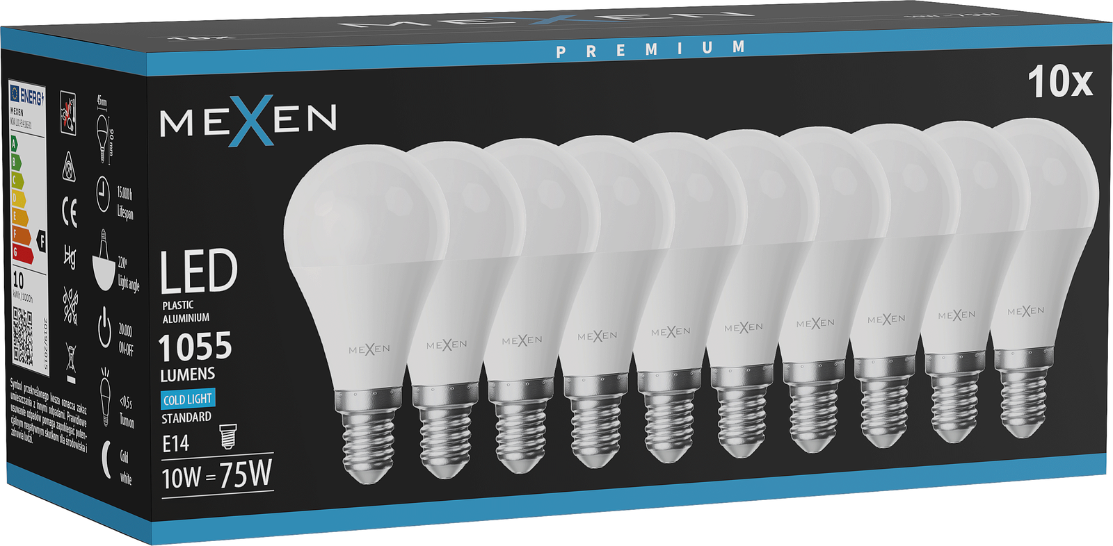 Mexen Nova 10x Ampoule LED E14, G45, 10W, Froid - 6500K, 1055 lm - L101-E14-1065-01x10