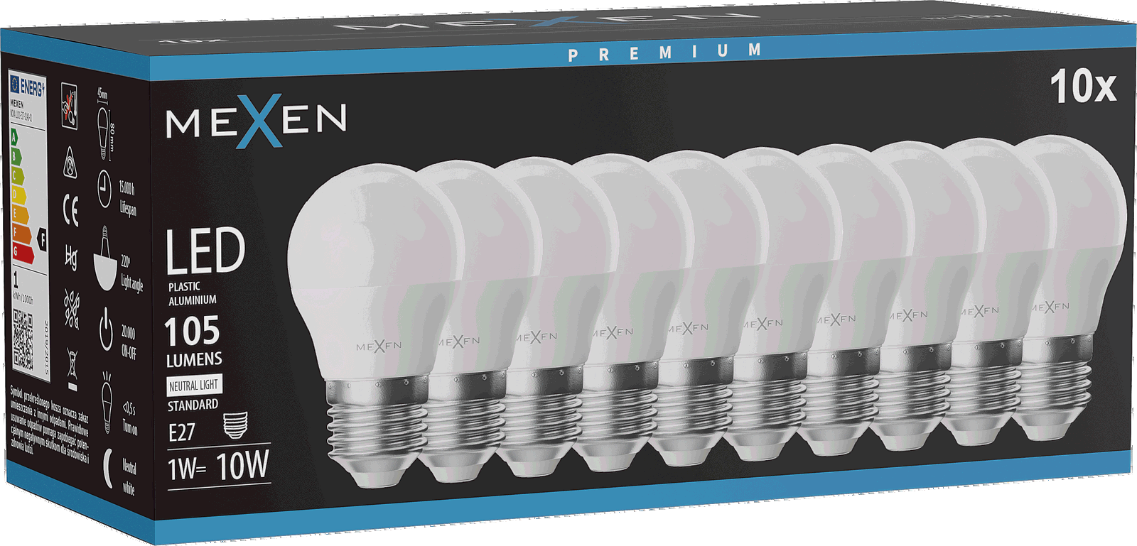Mexen Nova 10x Ampoule LED E27, G45, 1W, Neutre - 4000K, 105 lm - L101-E27-0140-01x10