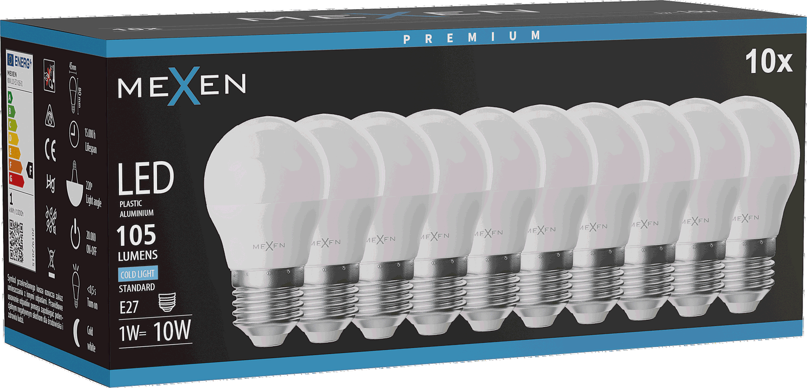 Mexen Nova 10x Ampoule LED E27, G45, 1W, Froid - 6500K, 105 lm - L101-E27-0165-01x10