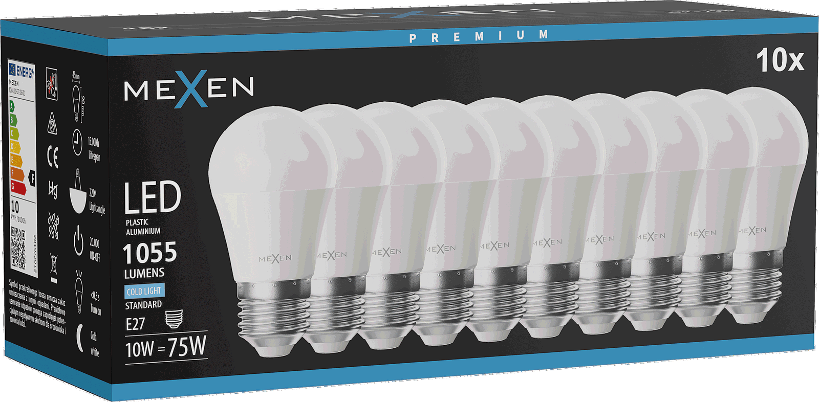 Mexen Nova 10x Ampoule LED E27, G45, 10W, Froid - 6500K, 1055 lm - L101-E27-1065-01x10