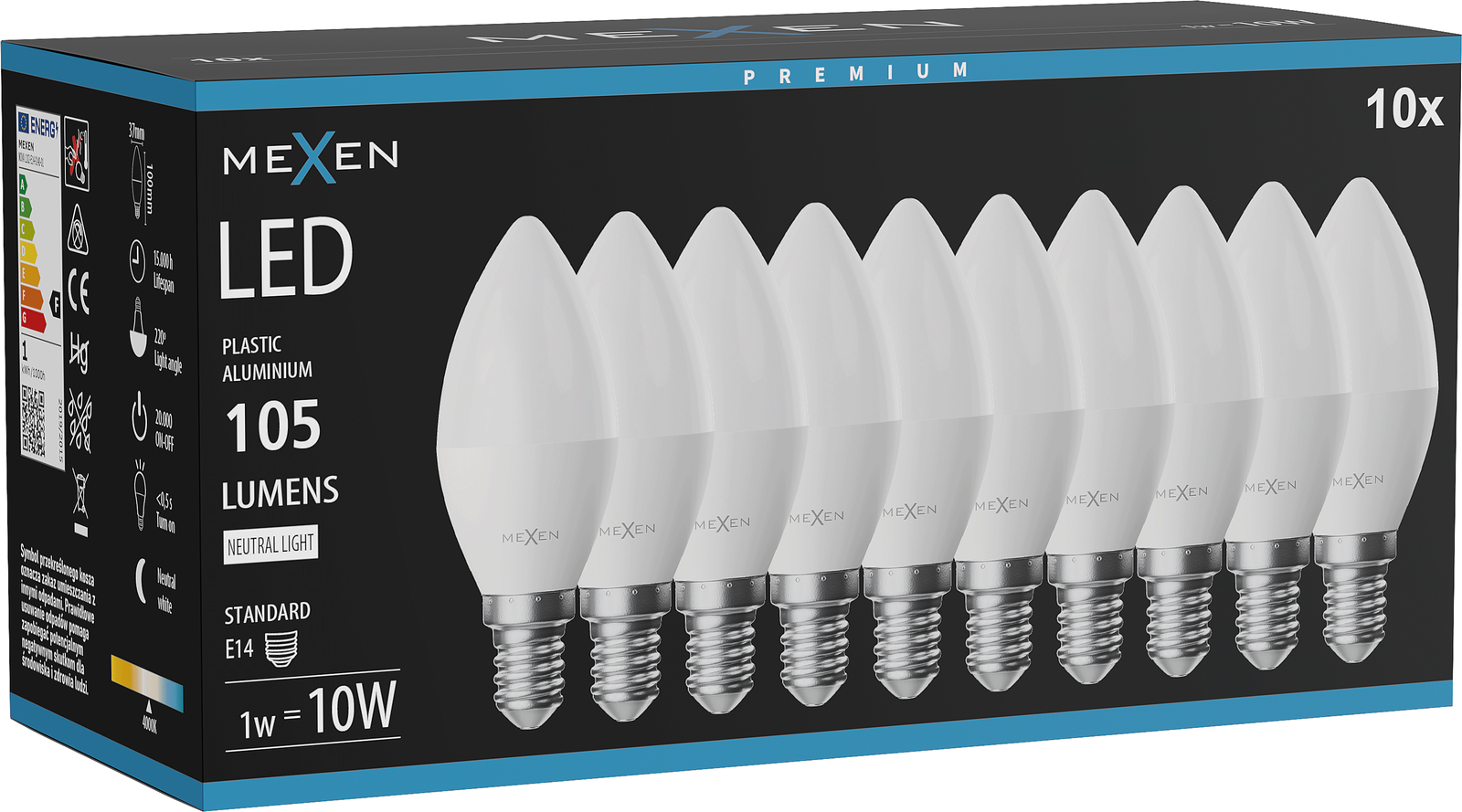 Mexen Nova 10x Ampoule LED E14, C37, 1W, Neutre - 4000K, 105 lm - L102-E14-0140-01x10