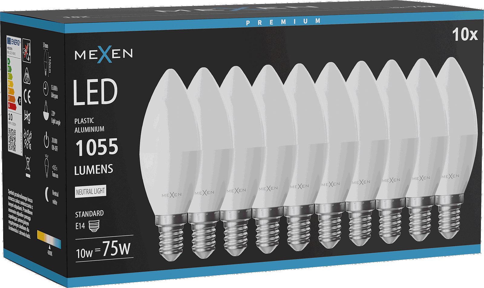 Mexen Nova 10x Ampoule LED E14, C37, 10W, Neutre - 4000K, 1055 lm - L102-E14-1040-01x10