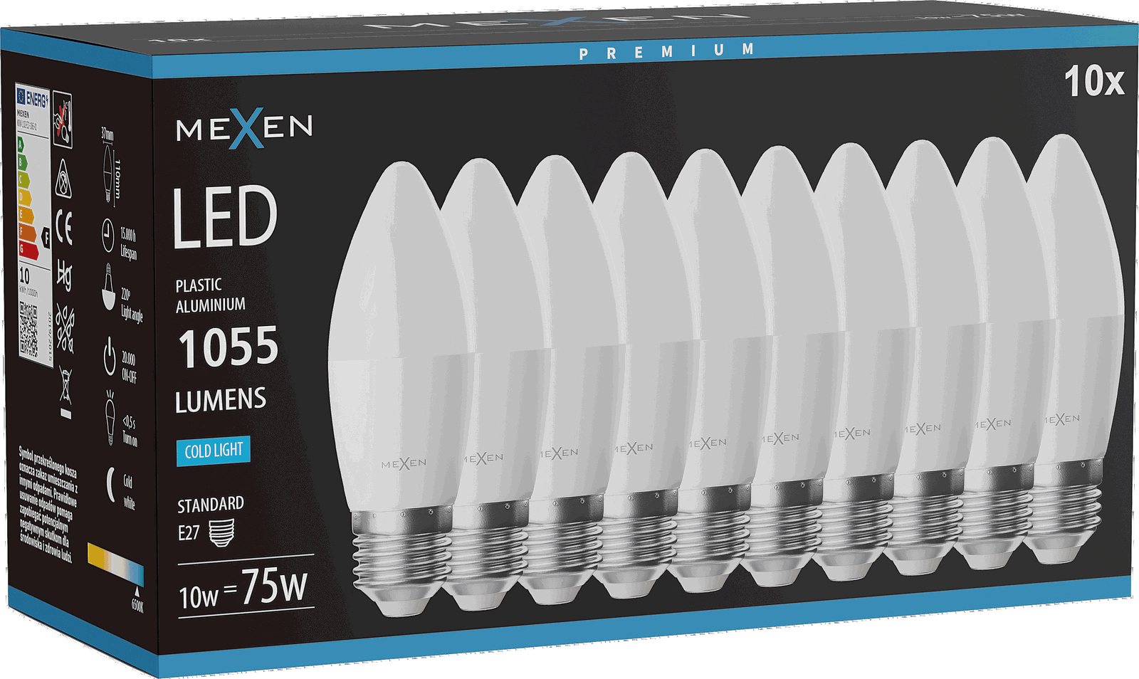Mexen Nova 10x Ampoule LED E27, C37, 10W, Froid - 6500K, 1055 lm - L102-E27-1065-01x10