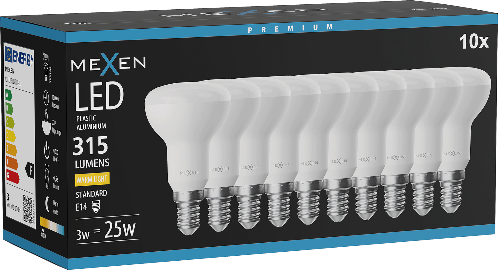 Mexen Nova 10x Ampoule LED E14, R50, 3W, Chaude - 3000K, 315 lm - L103-E14-0330-01x10