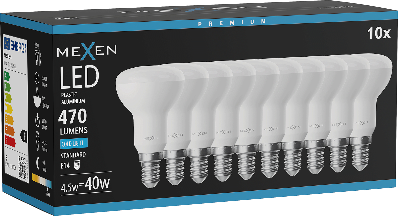 Mexen Nova 10x Ampoule LED E14, R50, 4,5W, Froid - 6500K, 470 lm - L103-E14-0565-01x10