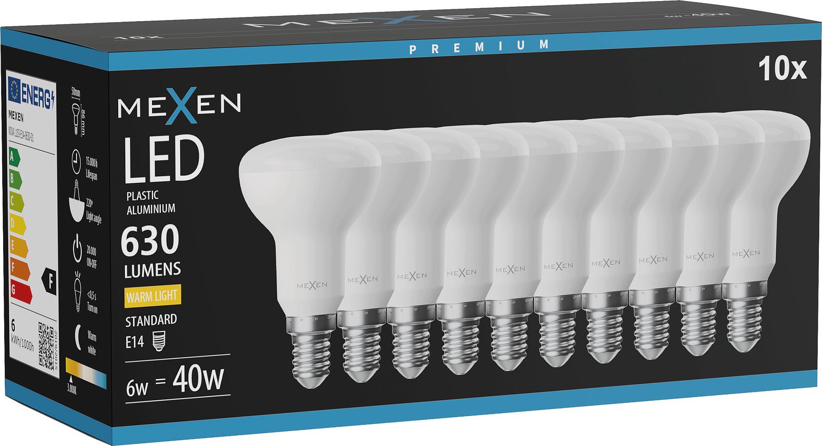 Mexen Nova 10x Ampoule LED E14, R50, 6W, Chaude - 3000K, 630 lm - L103-E14-0630-01x10