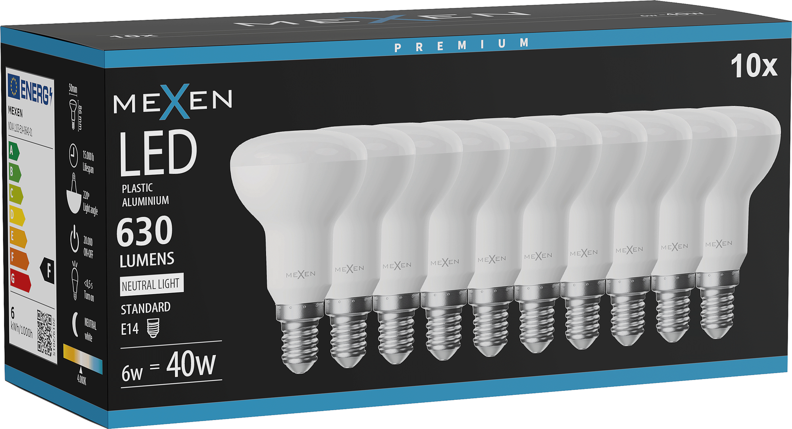 Mexen Nova 10x Ampoule LED E14, R50, 6W, Neutre - 4000K, 630 lm - L103-E14-0640-01x10