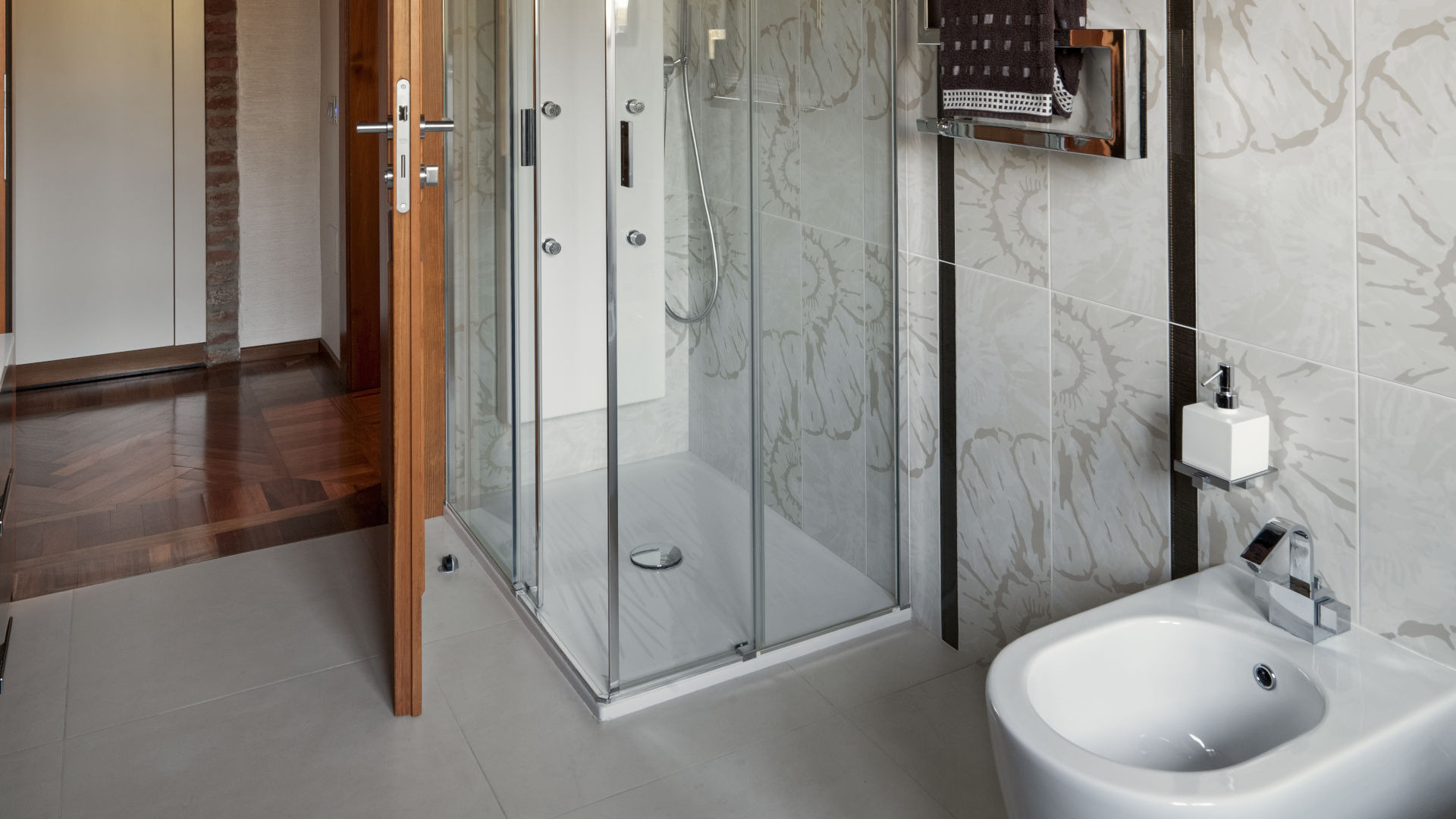 - La disposition des carreaux a aussi une énorme importance - des carreaux rectangulaires posés horizontalement élargiront et agrandiront optiquement la salle de bain
