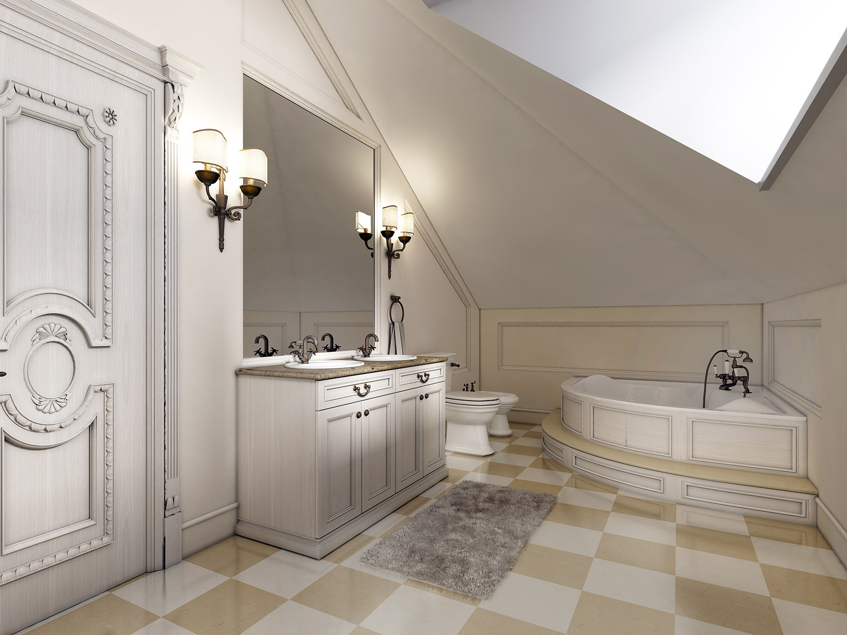 Créez autour de la baignoire d'angle un espace stylistiquement cohérent