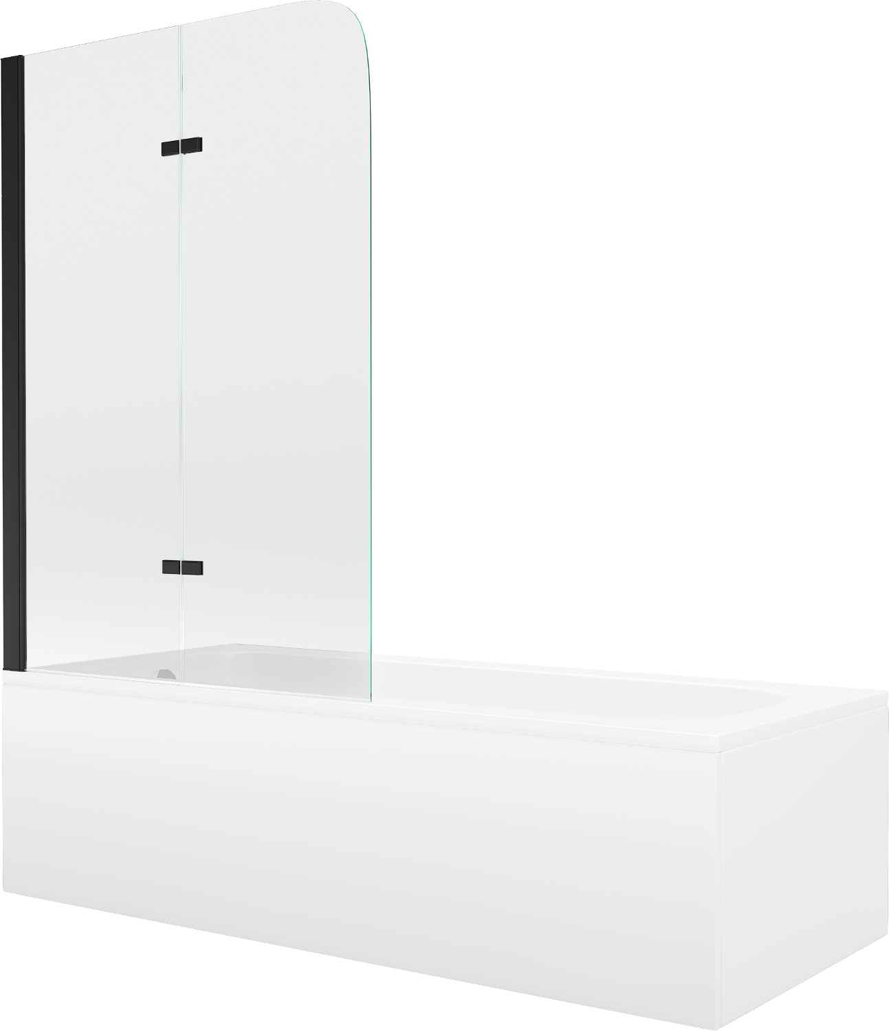 Mexen Vega Rechteckige Badewanne 180 x 80 cm mit Verkleidung und 2-flügeliger 100 cm Duschwand, transparent, schwarz