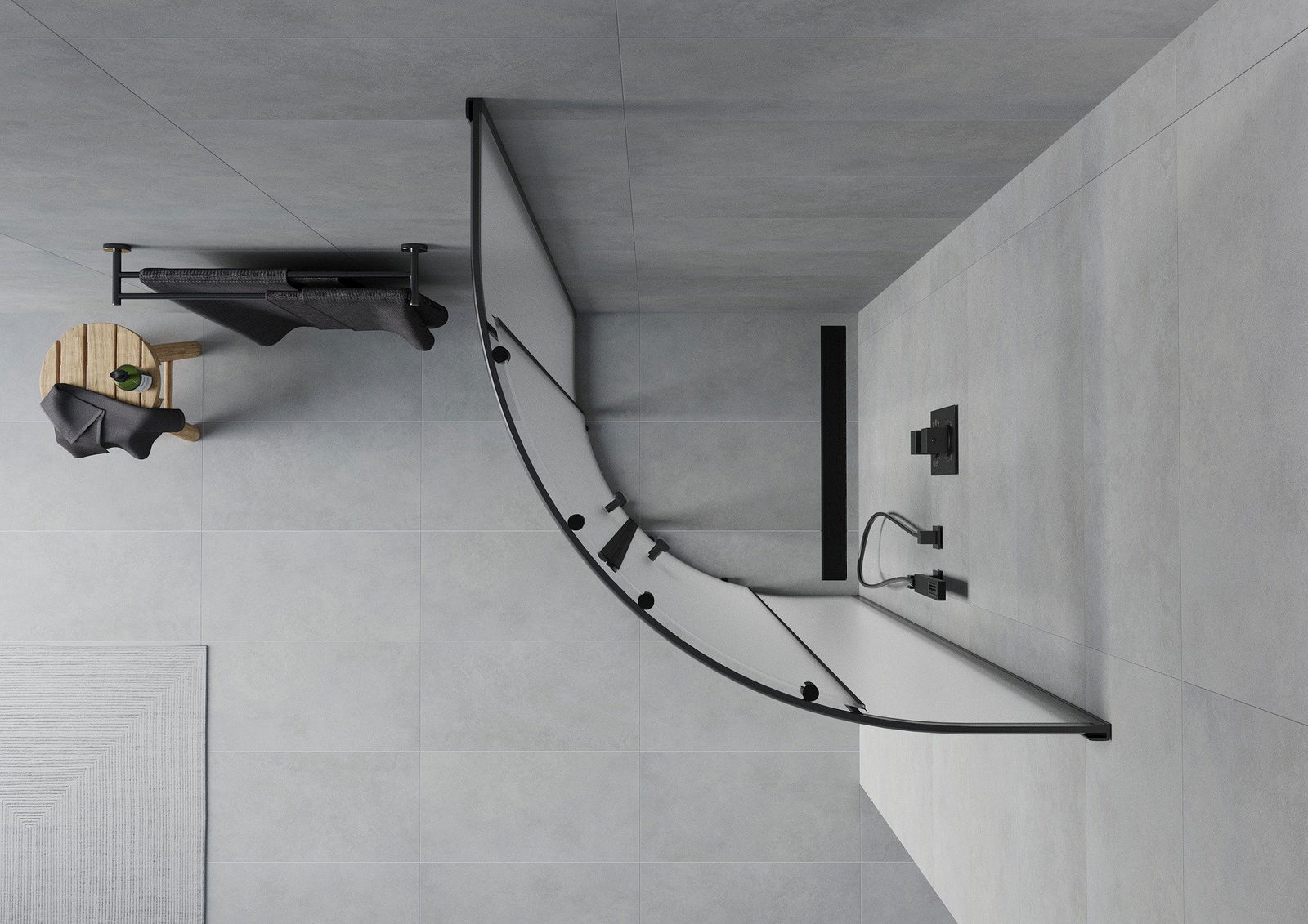 Mexen Rio Duschkabine Halbkreis 90 x 90 cm, matt, schwarz - 863-090-090-70-30