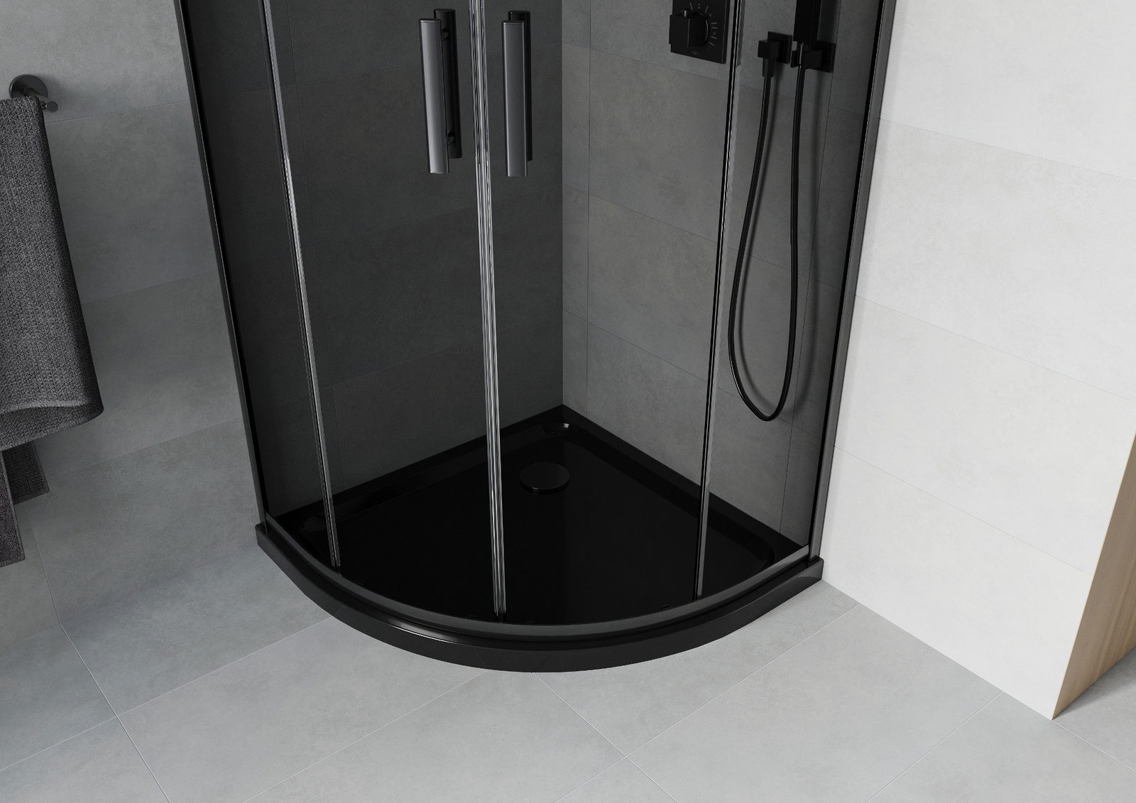 Mexen Rio Duschkabine halbrund 80 x 80 cm, Grafit, Schwarz + Duschwanne Flat, Schwarz 863-080-080-70-40-4170B