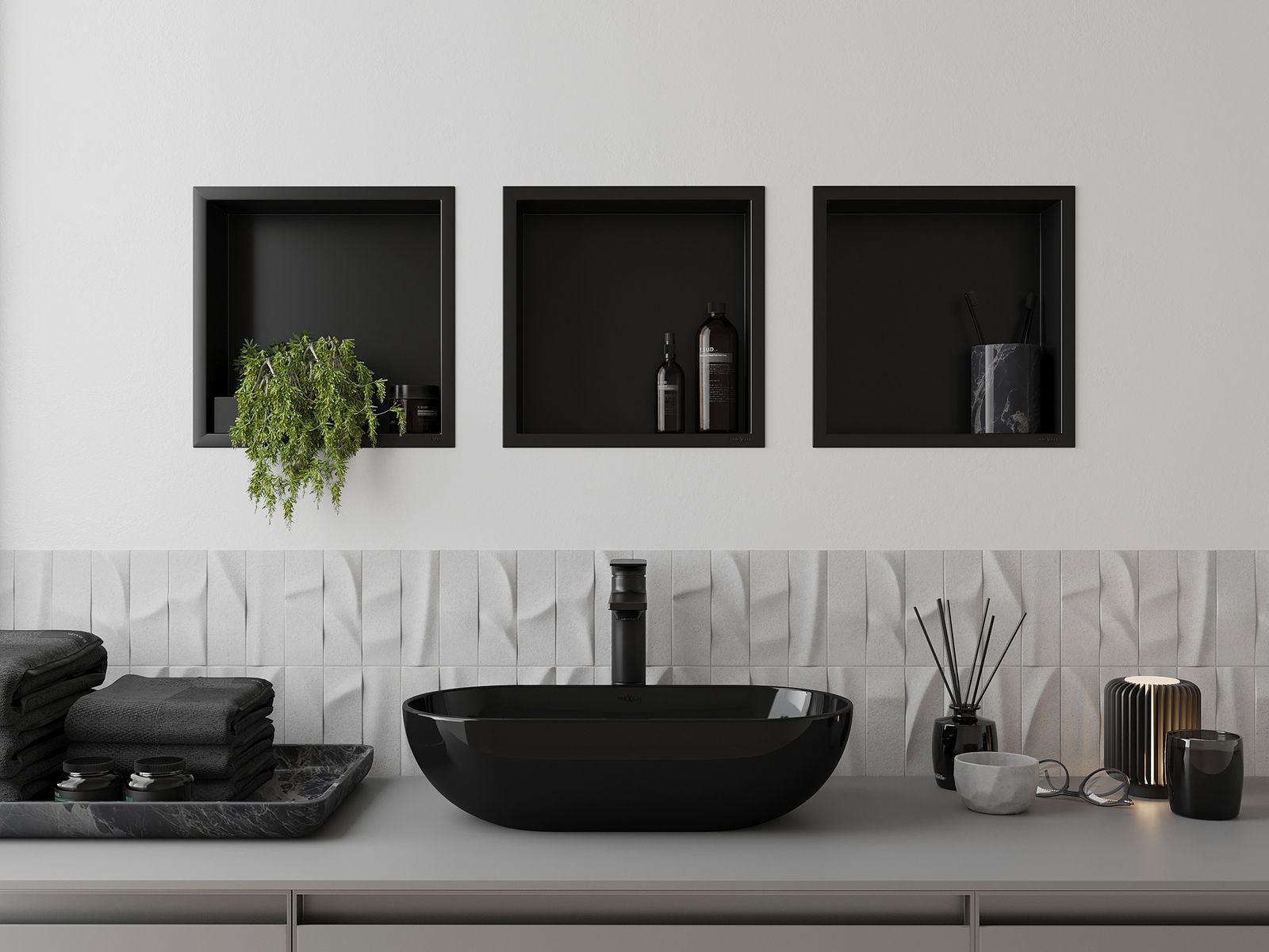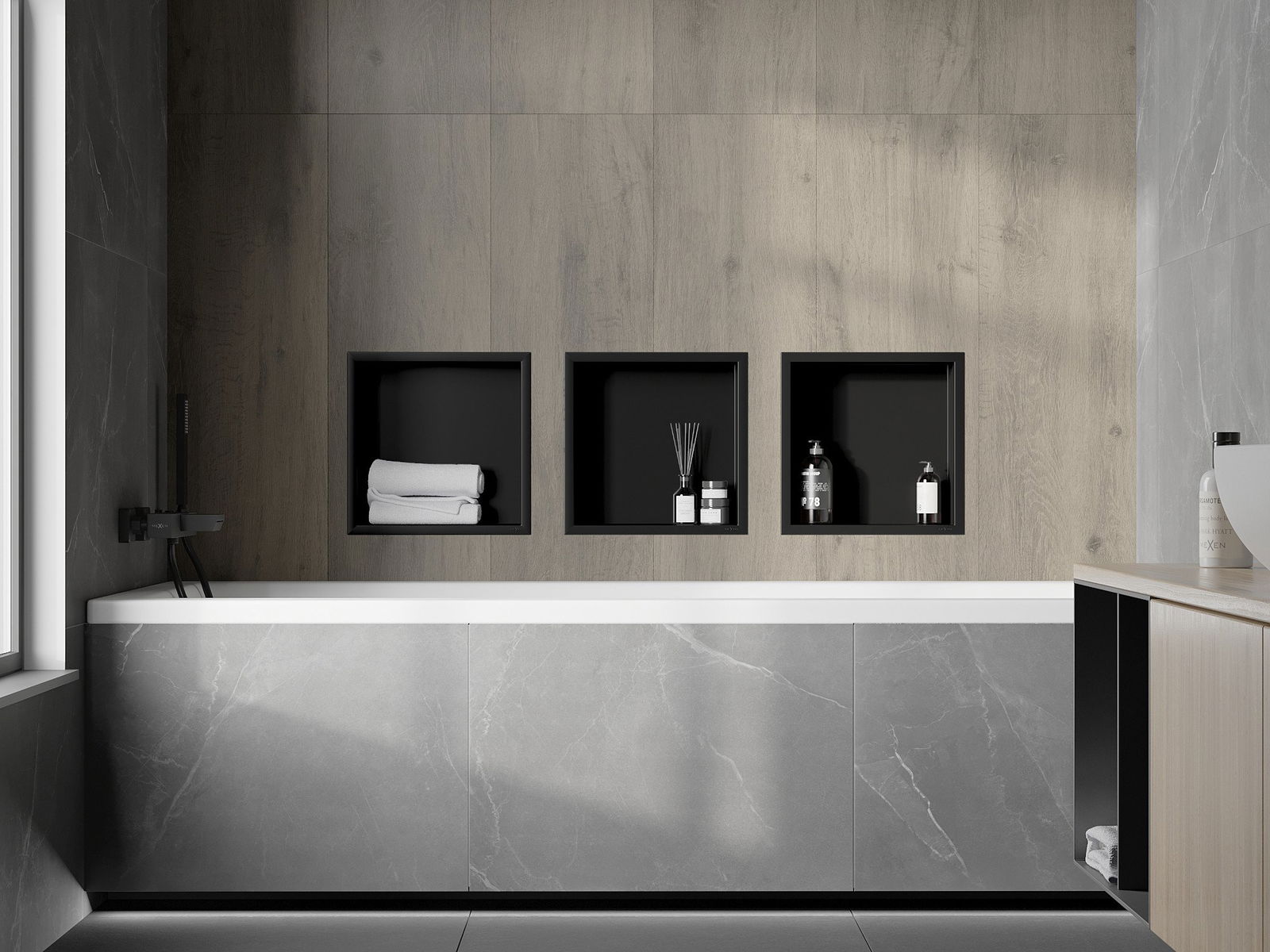 Möglichkeit der Installation in der Wand oder in einem speziell vorbereiteten Gebäude. Es ist eine äußerst moderne und funktionale Lösung, mit der Sie Platz sparen und das Produkt mit der Ästhetik des Innenraums anpassen und eine kohärente Komposition schaffen können.