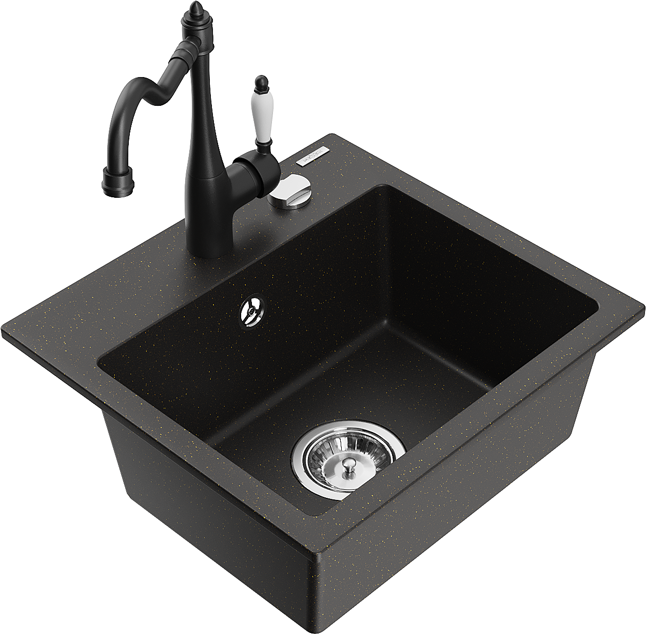Mexen Milo Granitspüle 1-Becken mit Küchenarmatur Carla, schwarz/gold metallic - 6505-75-670700-70