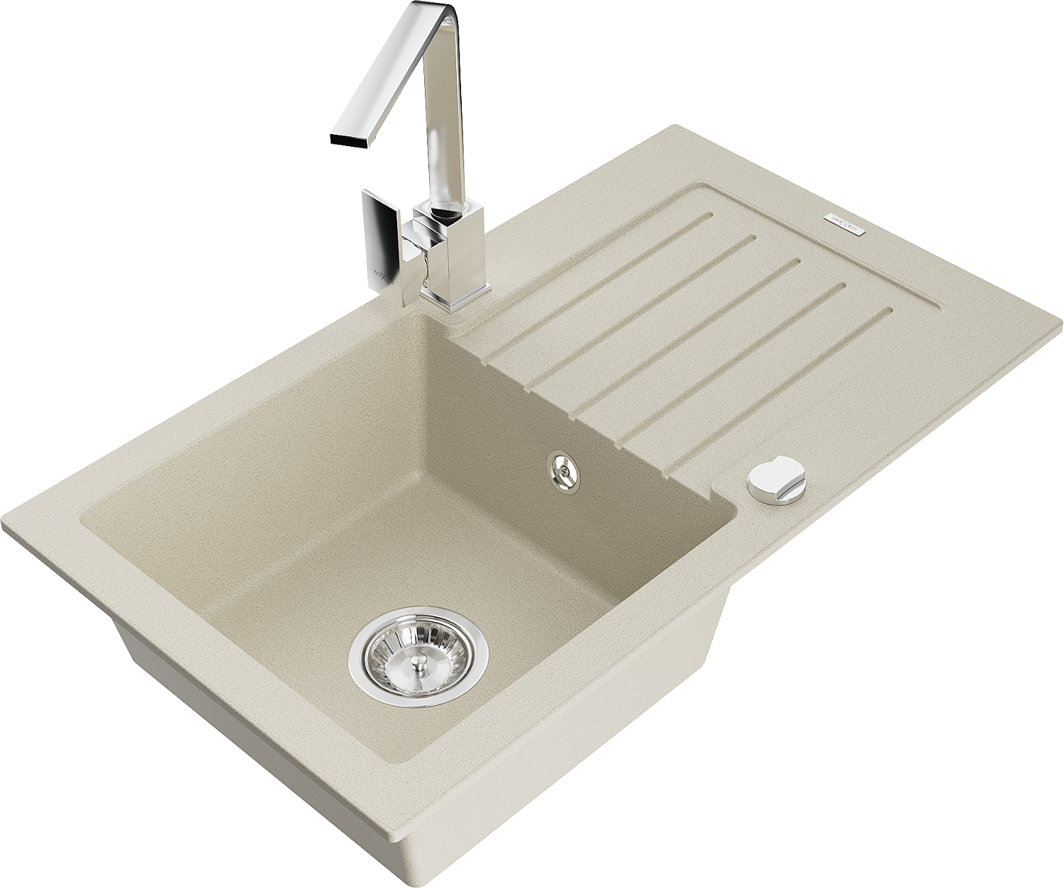 Mexen Pablo Granitspüle 1-Becken mit Abtropffläche und Küchenarmatur Rita, beige - 6510-69-670300-00