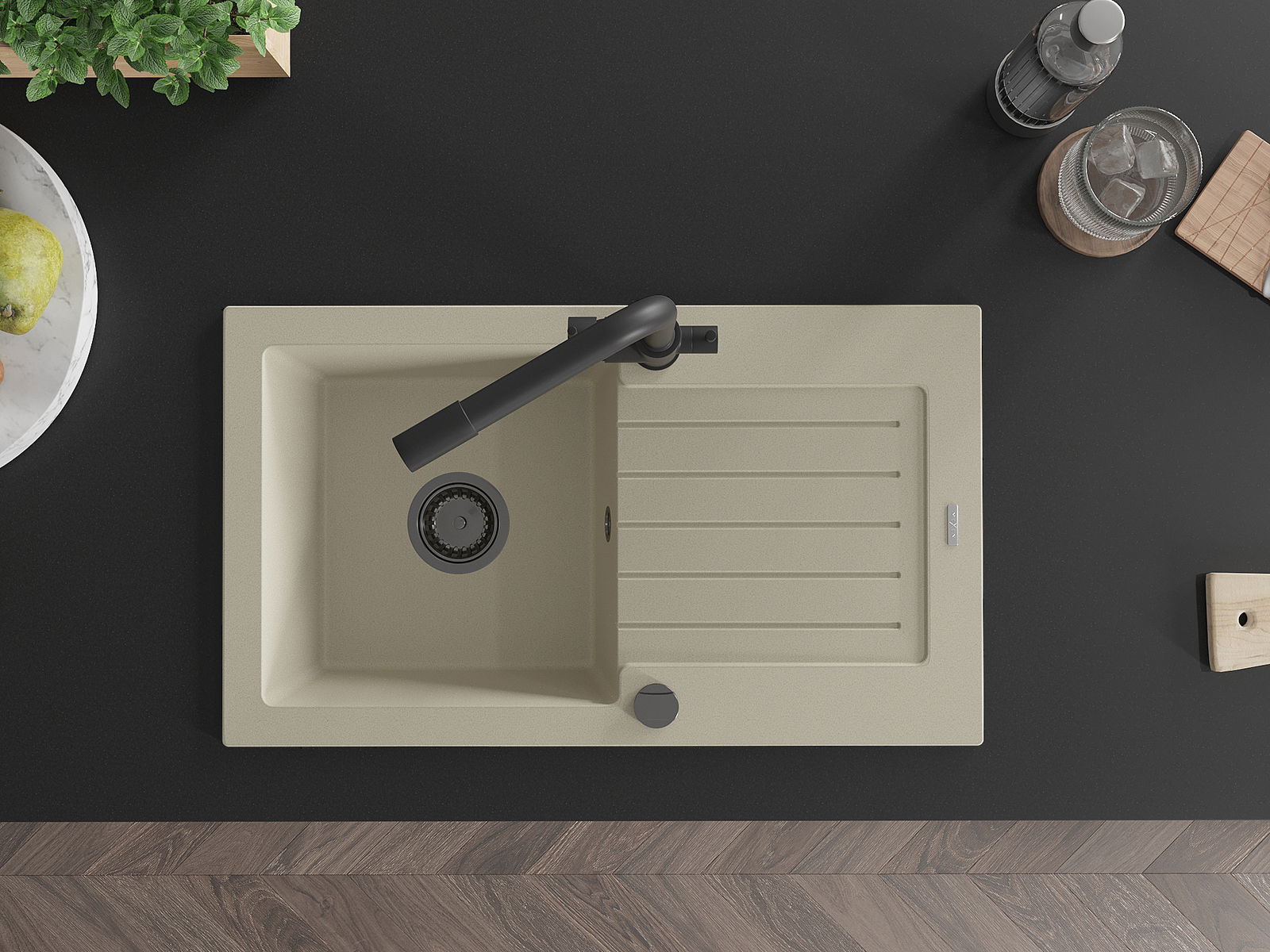 Mexen Pablo Granitspüle 1-becken mit Abtropffläche und Küchenarmatur Duero, beige - 6510-69-671600-70