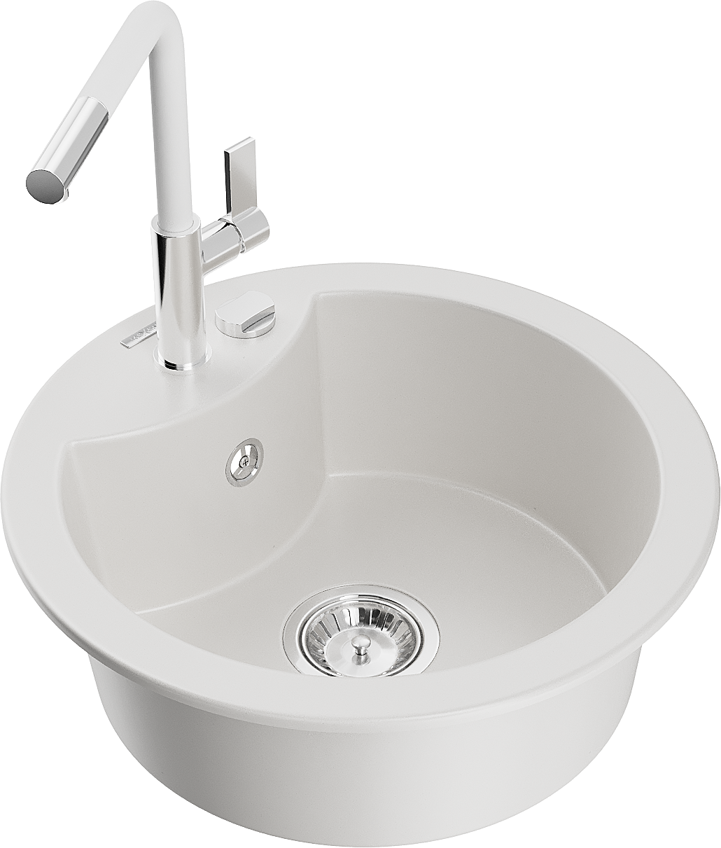 Die Spüle besteht aus hochwertigem Granit. Es ist eine elegante und vor allem praktische Ergänzung zu jeder Küche, unabhängig von ihrem Stil. Hohe Qualität und Granitdauer sorgen für eine langjährige Nutzung.