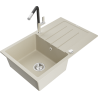 Die Spüle besteht aus hochwertigem Granit. Es ist eine elegante und vor allem praktische Ergänzung zu jeder Küche, unabhängig von ihrem Stil. Hohe Qualität und Granitdauer sorgen für eine langjährige Nutzung.