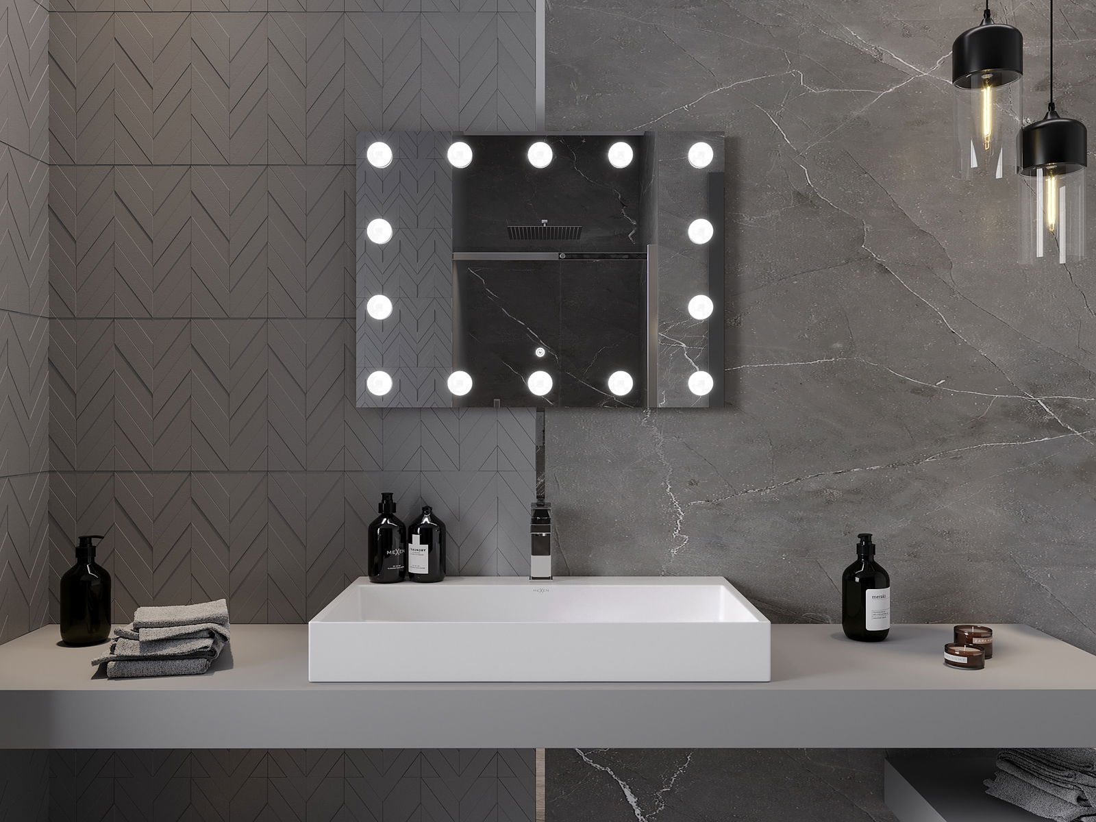 Der Spiegel ist mit kalter LED -Beleuchtung - 6000k ausgestattet. Es bietet eine intensive und klare Beleuchtung, mit der Sie auch die kleinsten Details bemerken können. Unterstützt perfekt tägliche Behandlungen mit Gesichtspflege.