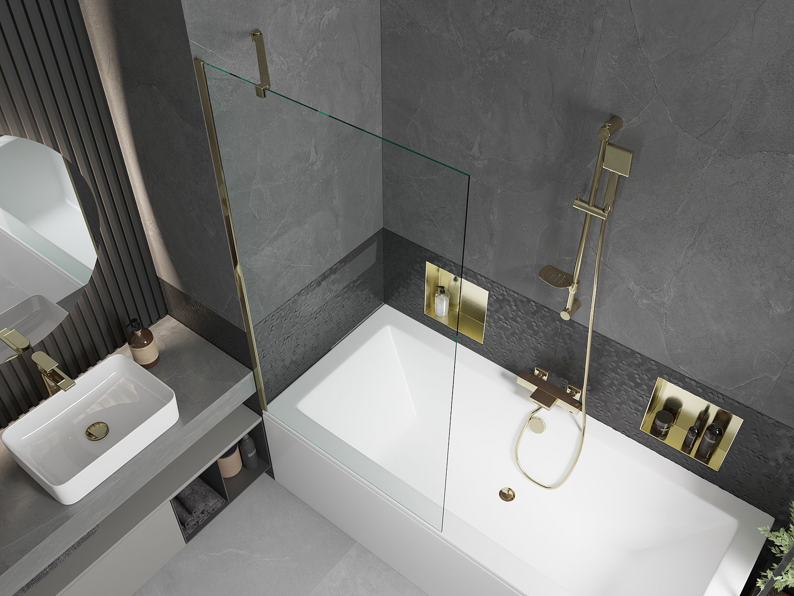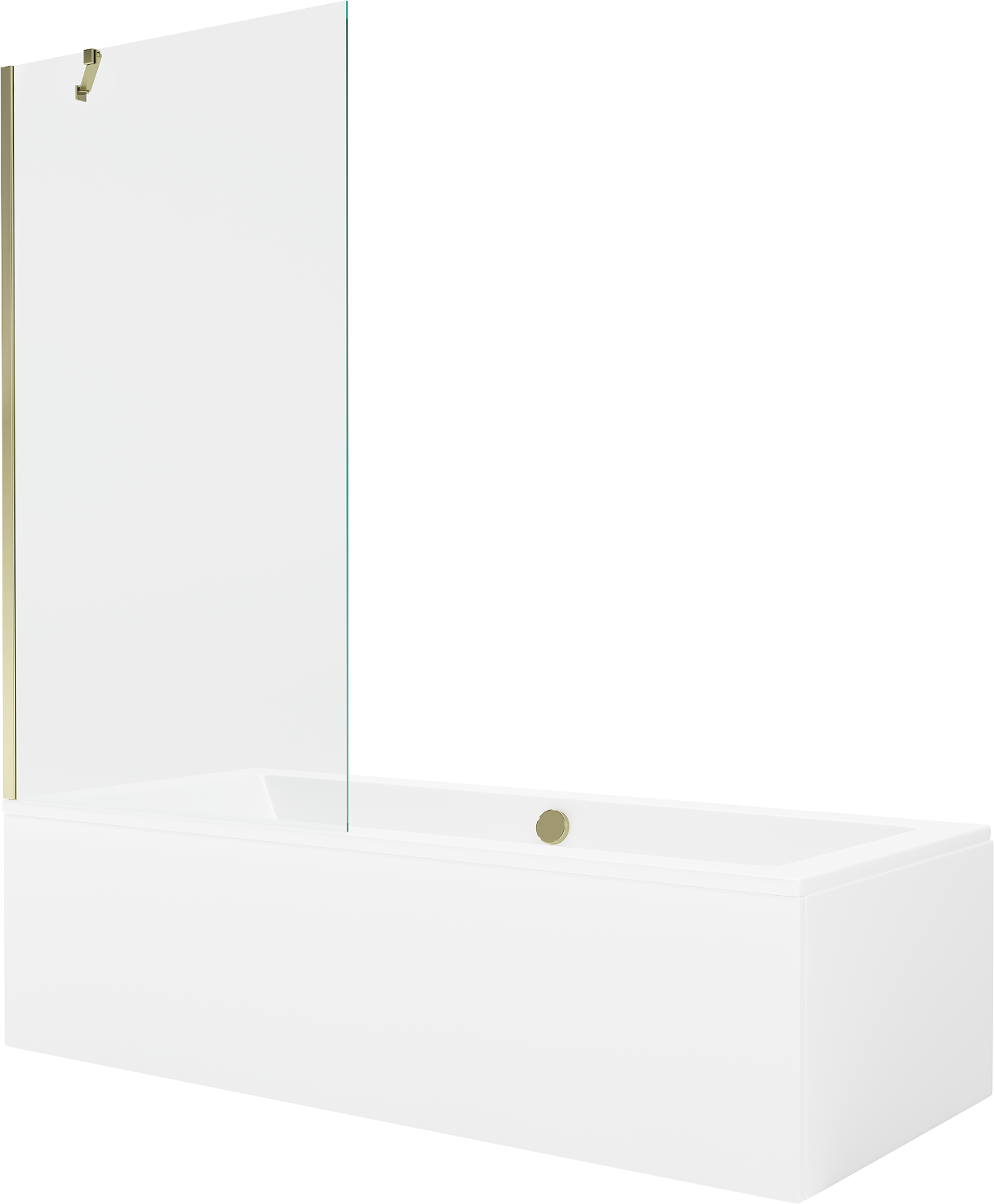 Mexen Cube Rechteckige Badewanne 180 x 80 cm mit Verkleidung und 1-flügeliger 90 cm Duschabtrennung, transparent, gold