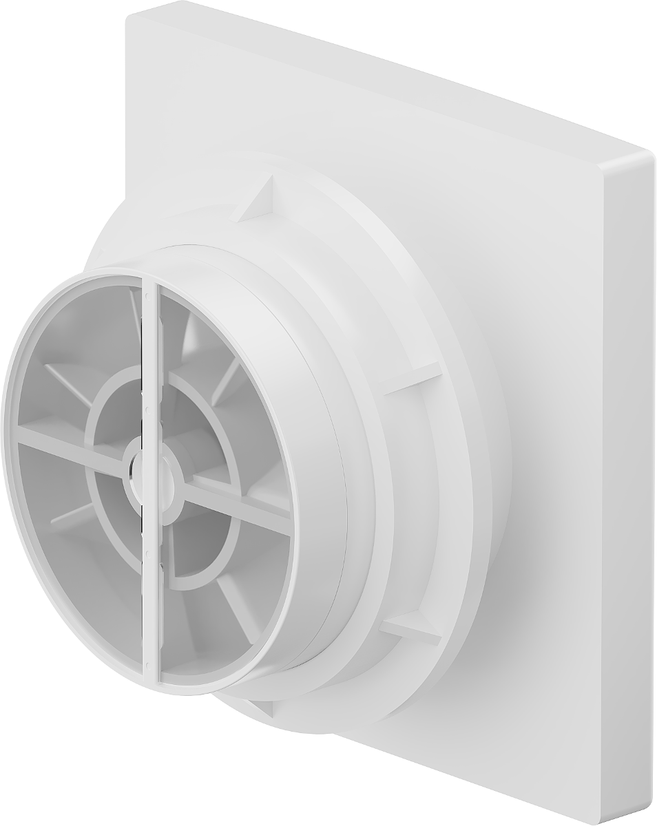 Das Gerät ist mit einem Mechanismus ausgestattet, der ein Zurückströmen der Luft in den Raum verhindert, wenn der Ventilator ausgeschaltet ist. Besonders nützlich in Badezimmern, wo die Vermeidung unerwünschter Luftströme den Komfort und die Hygiene verbessern kann.